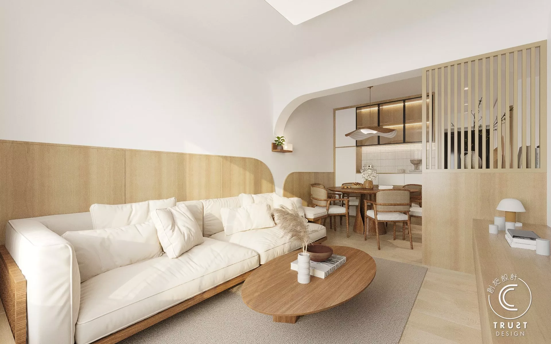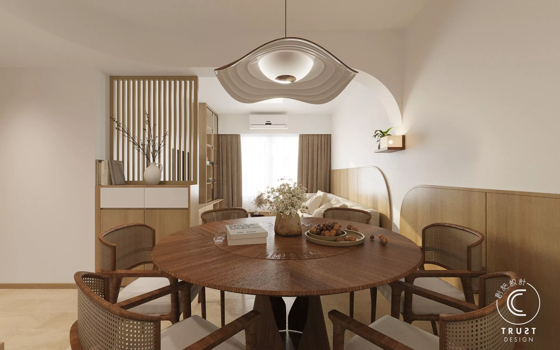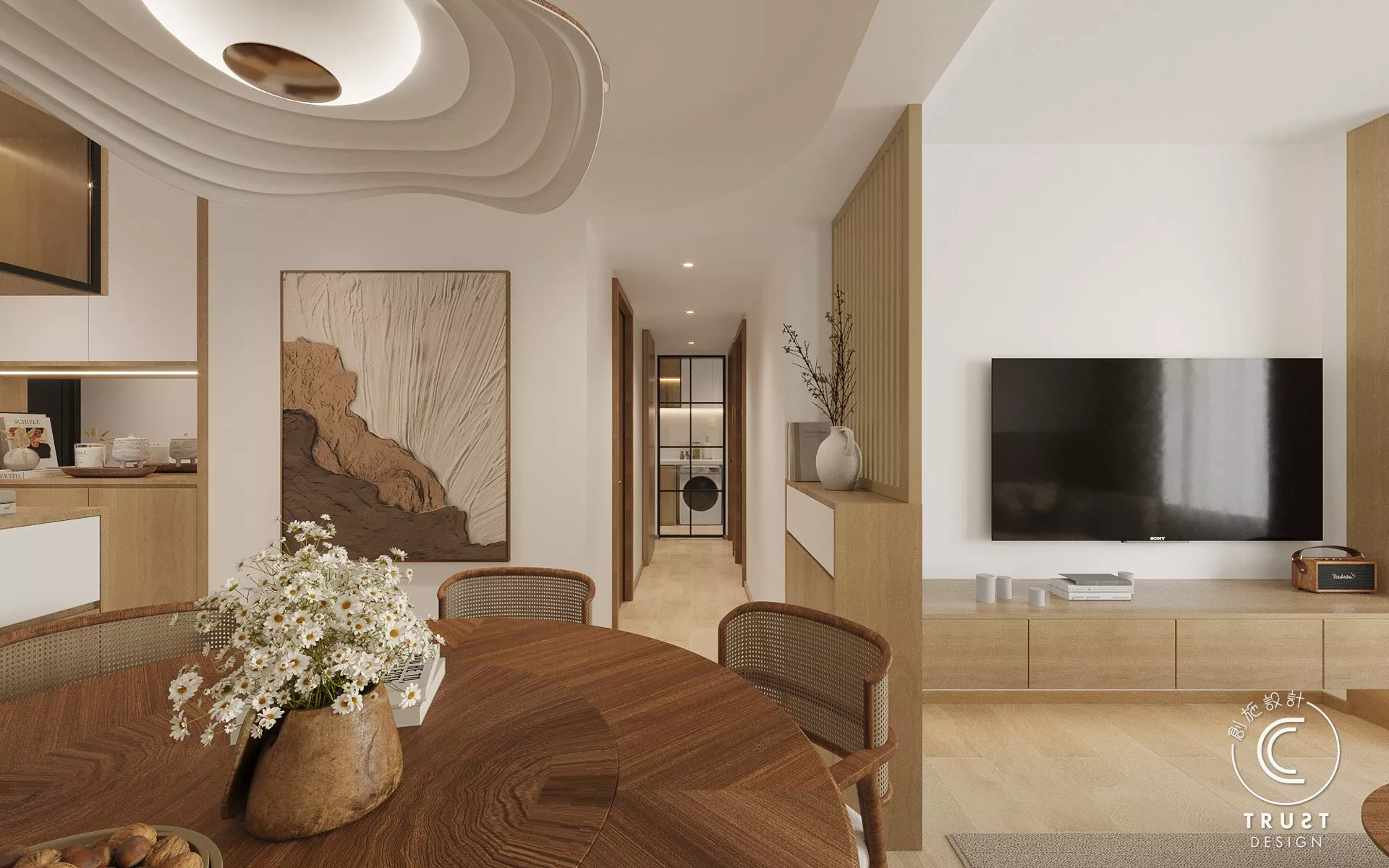 弧型背板與天花的運用,讓空間注入了流動的線條美,營造出柔和而優雅的視覺效果。