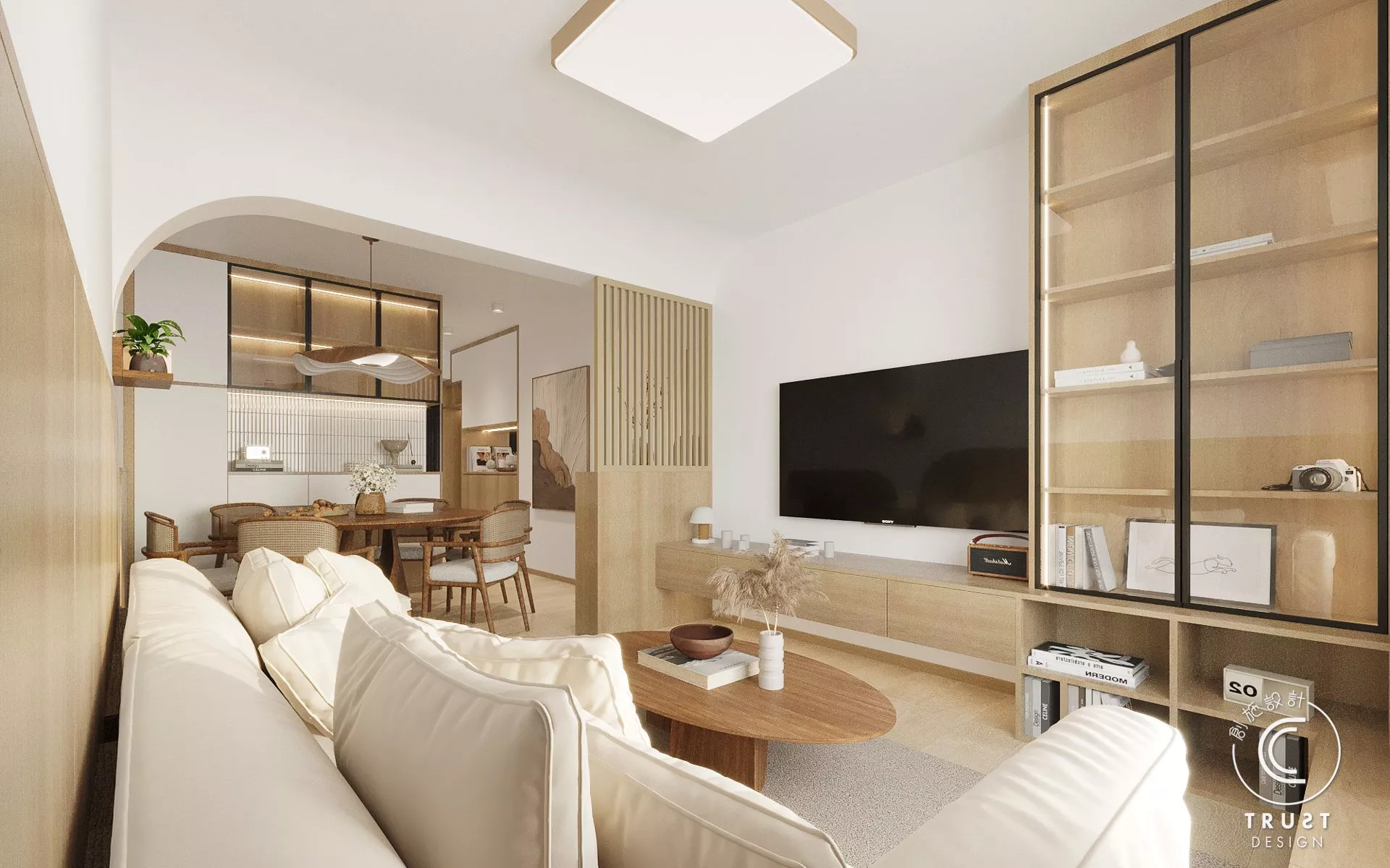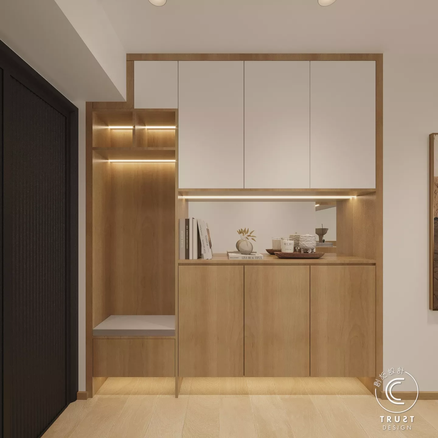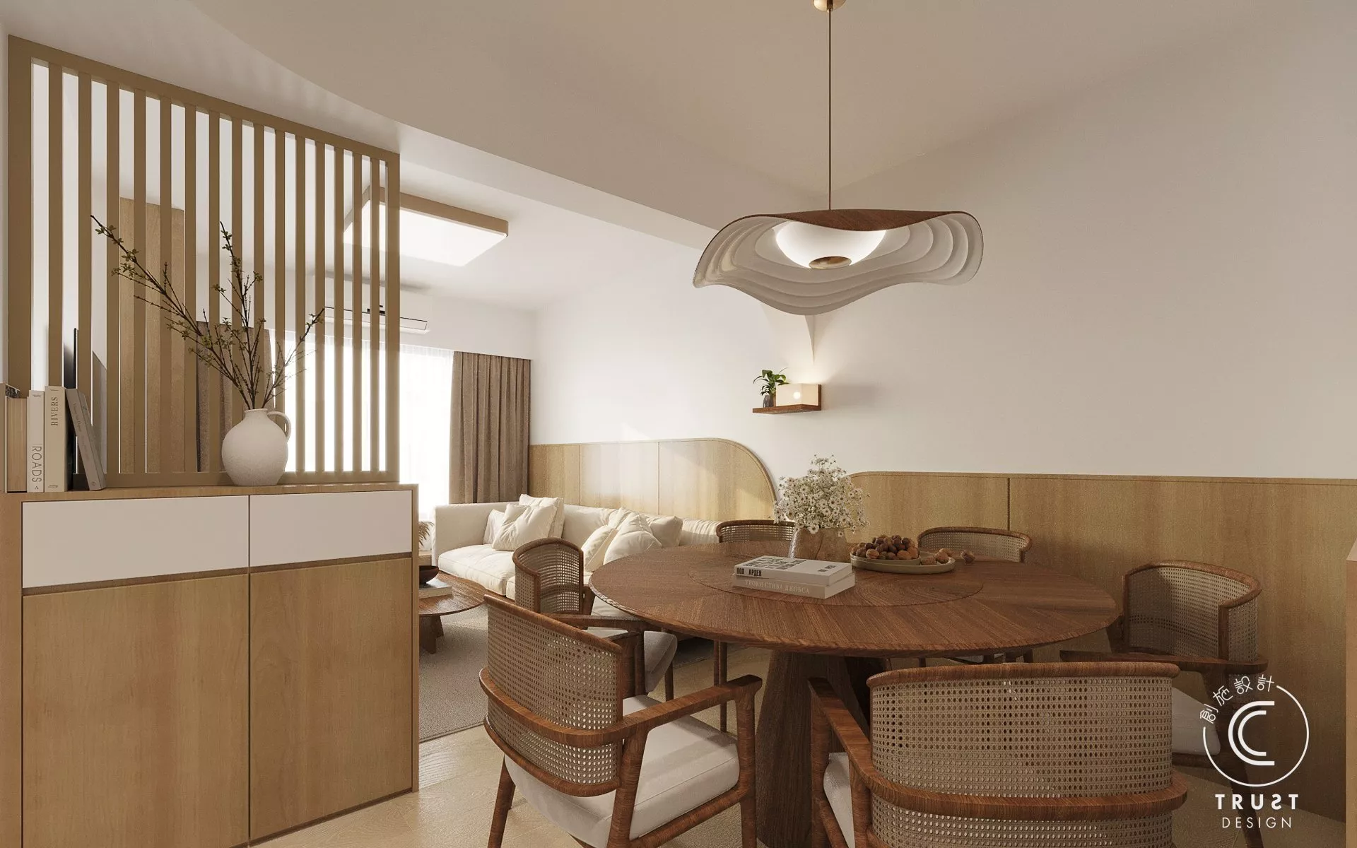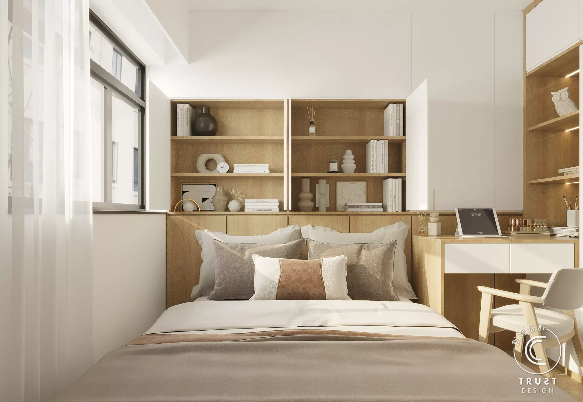 弧型背板與天花的運用,讓空間注入了流動的線條美,營造出柔和而優雅的視覺效果。