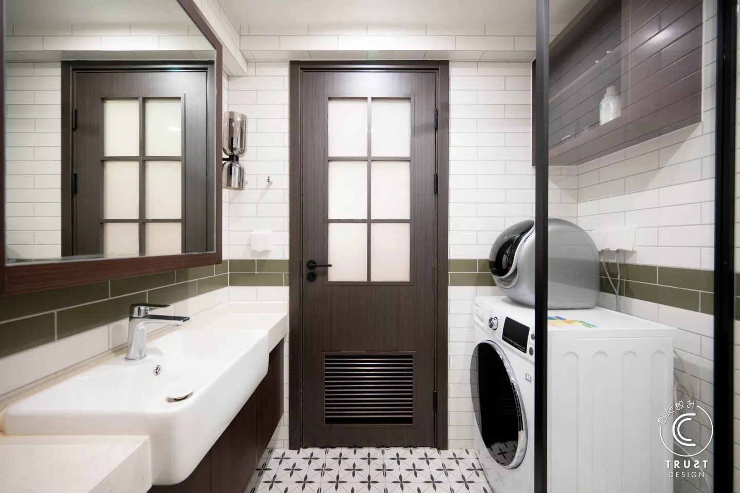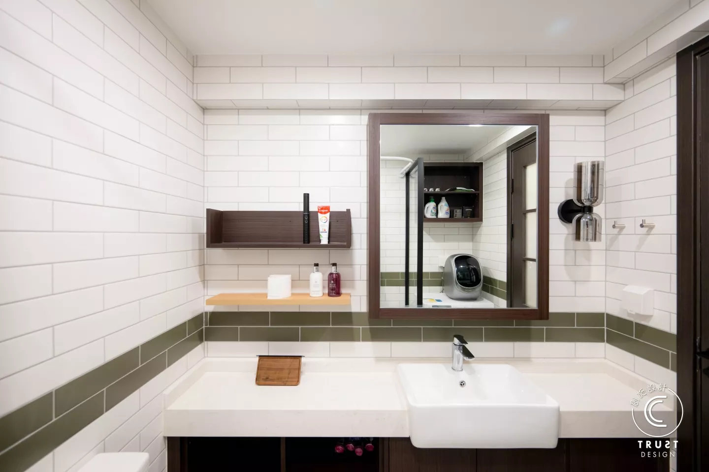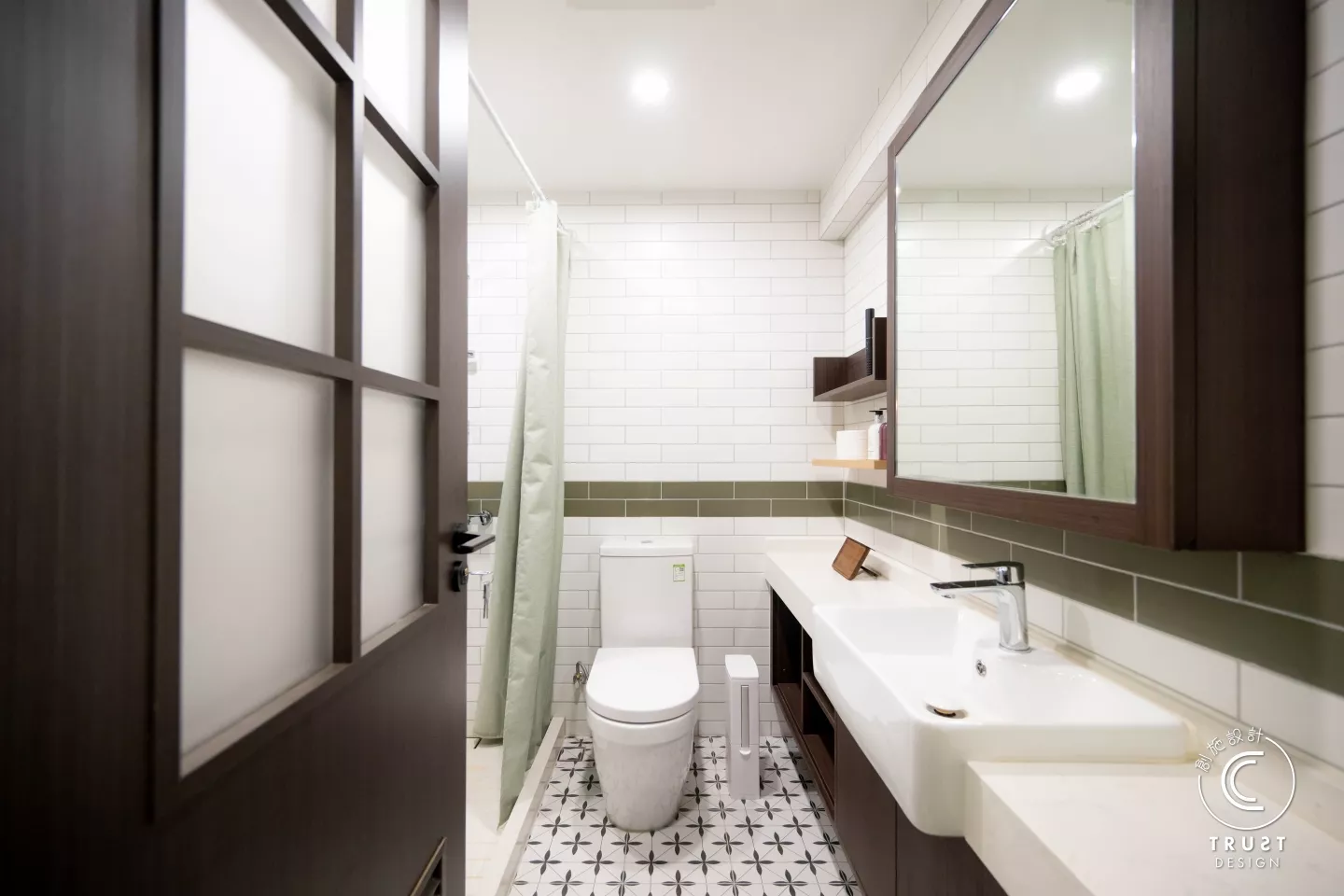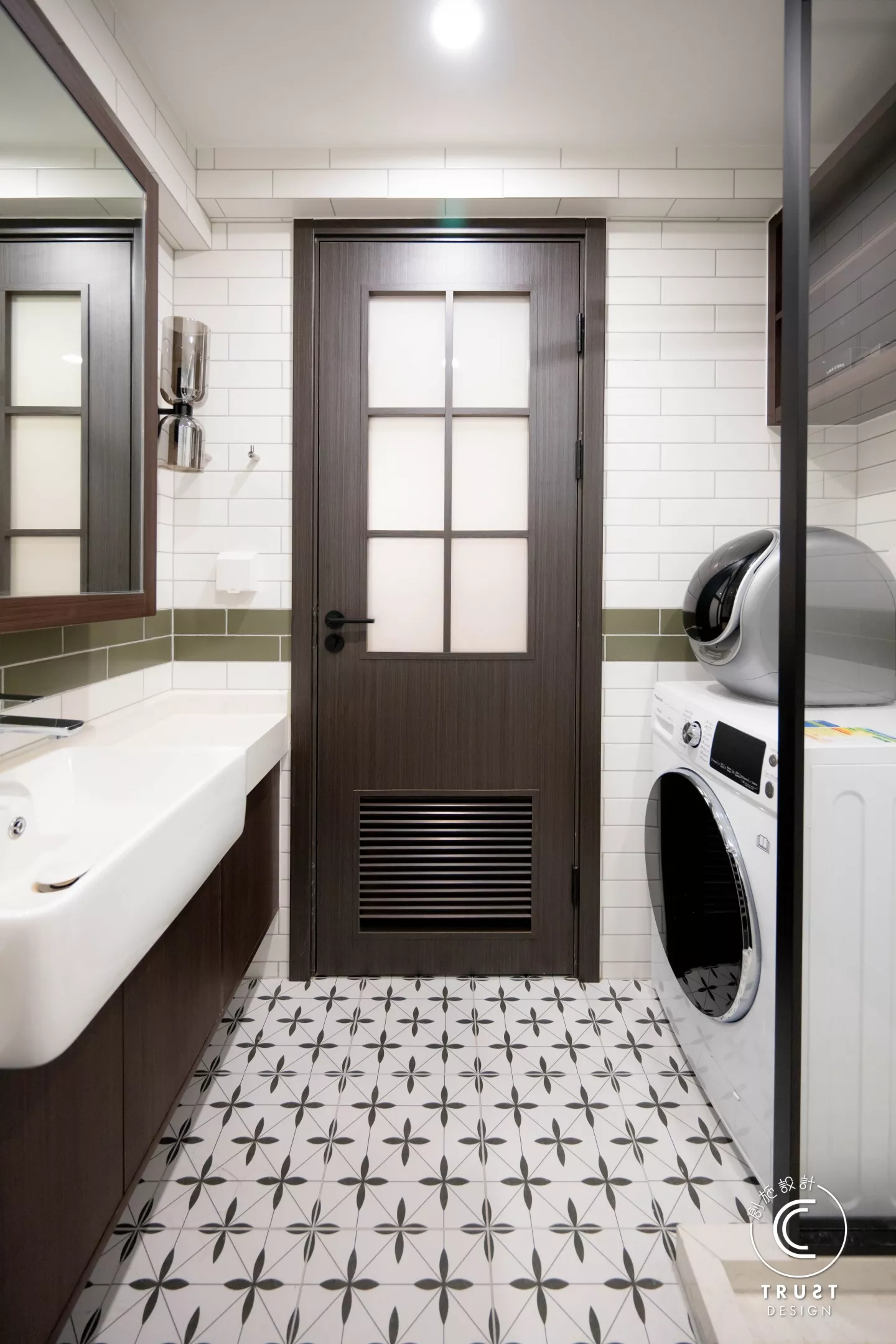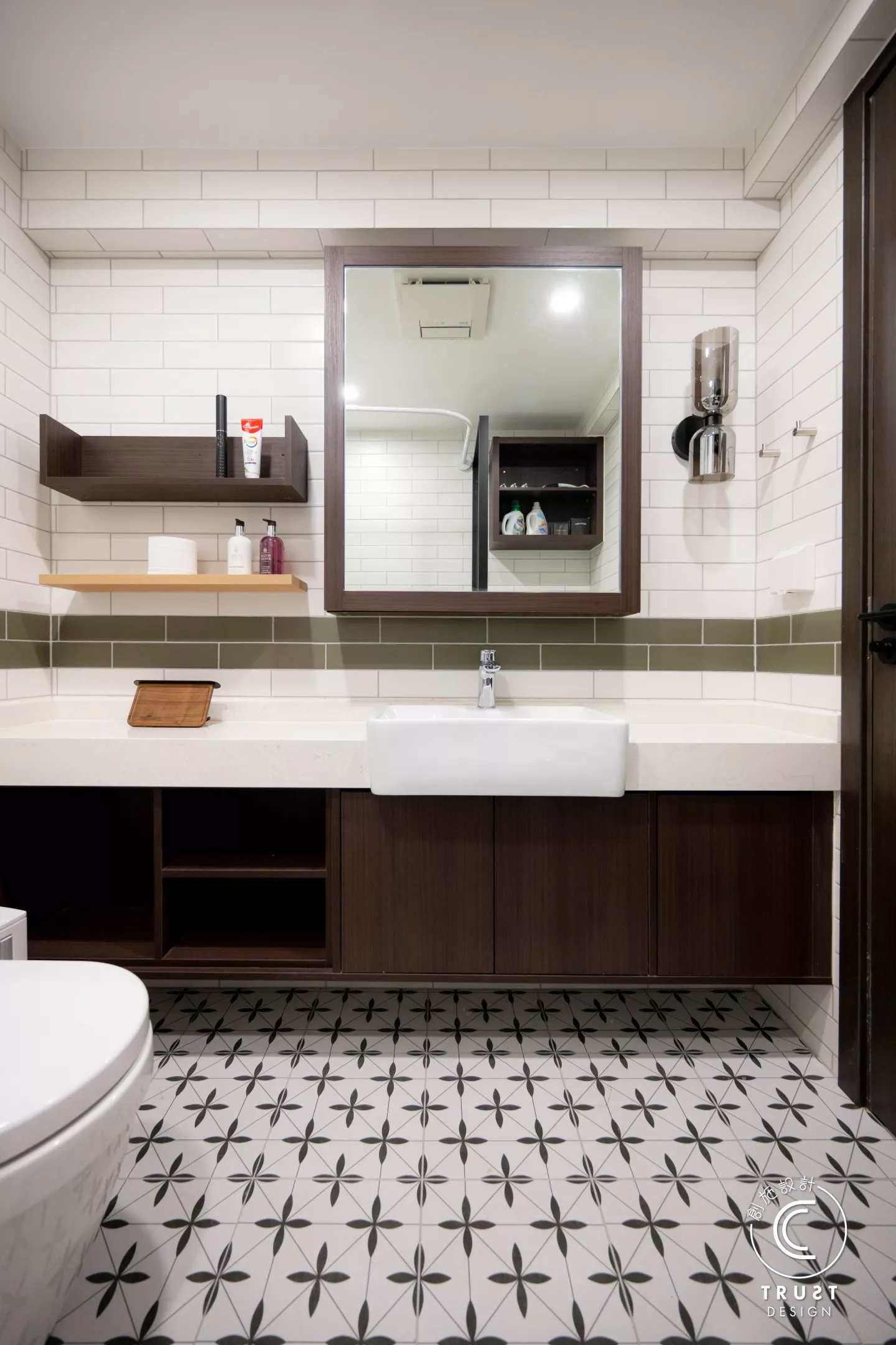 復古氛圍沁染其中,木色調、綠、白色條狀磚和花紋磚裝飾交織出獨特的復古風格。