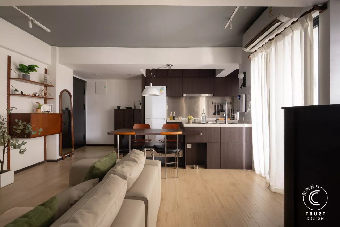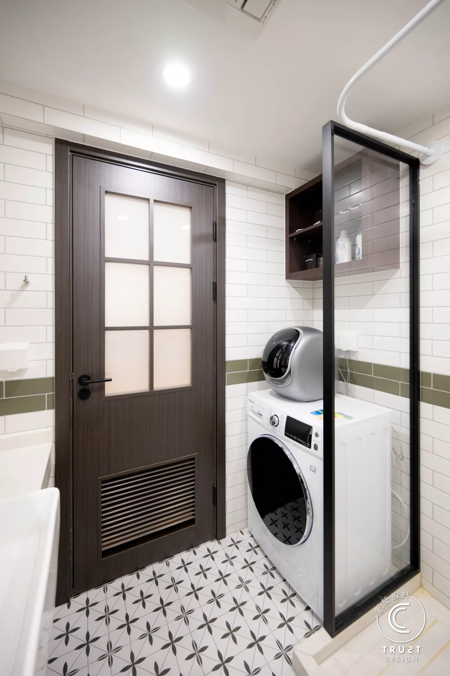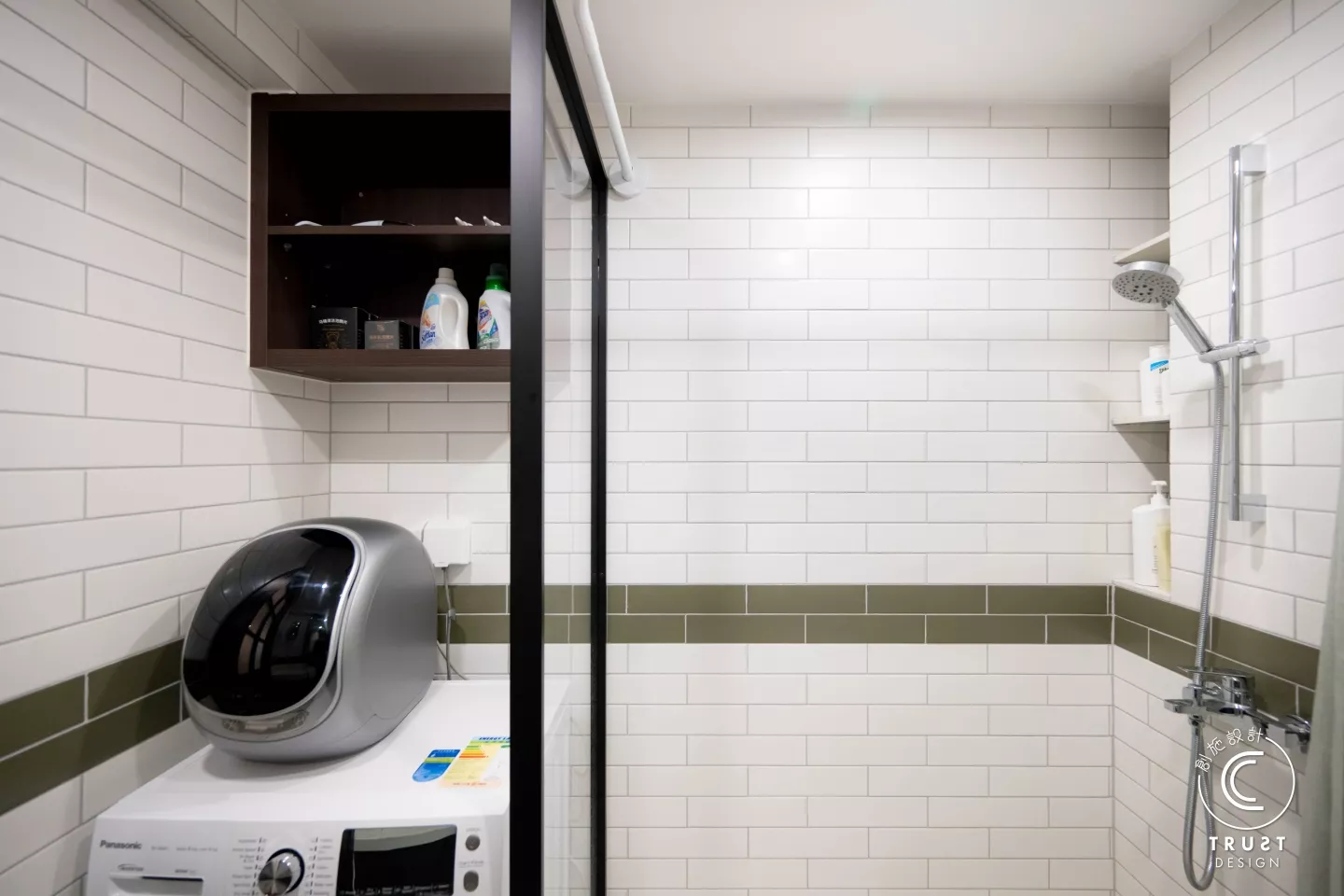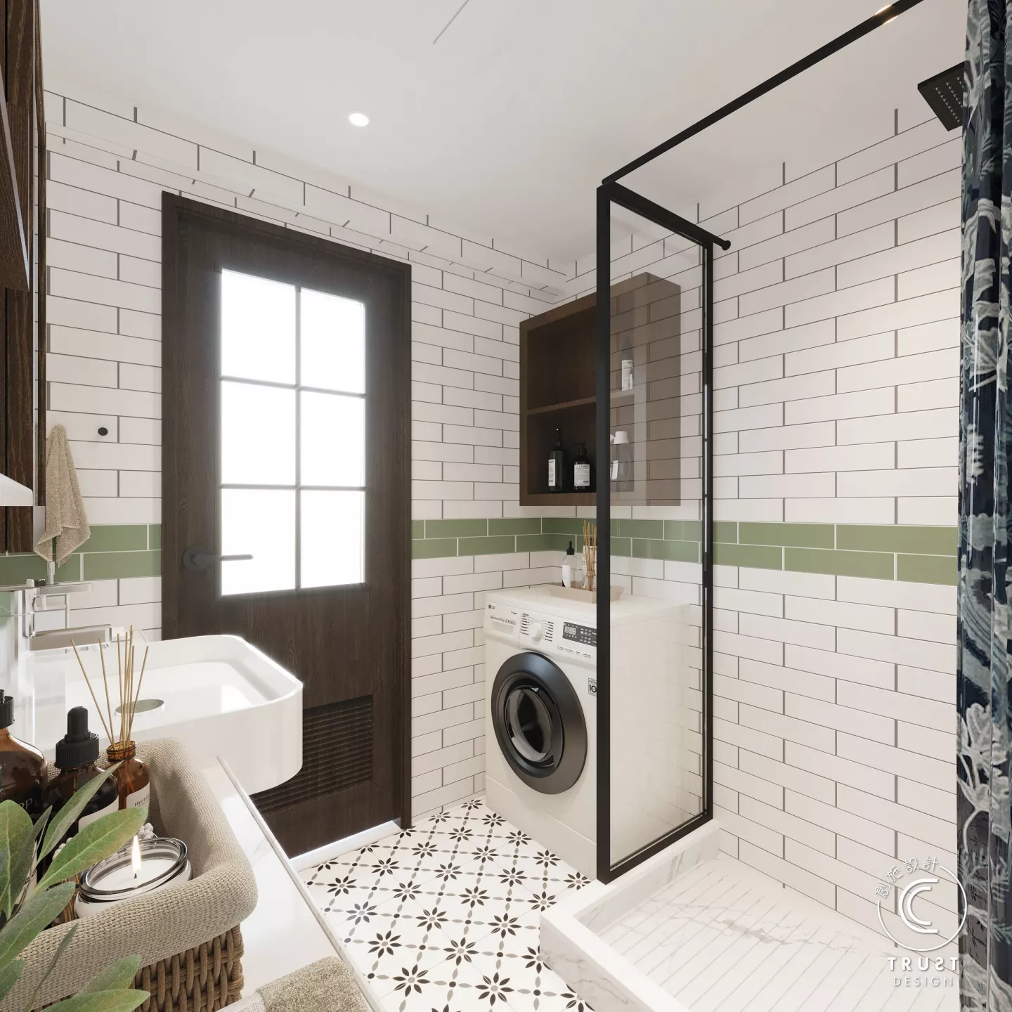 復古氛圍沁染其中,木色調、綠、白色條狀磚和花紋磚裝飾交織出獨特的復古風格。