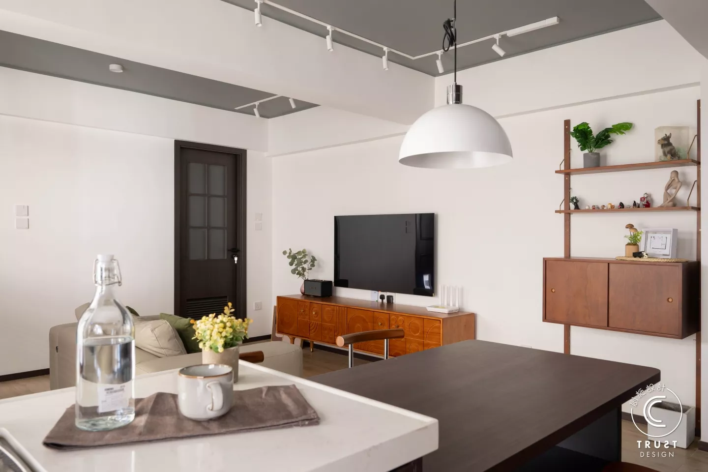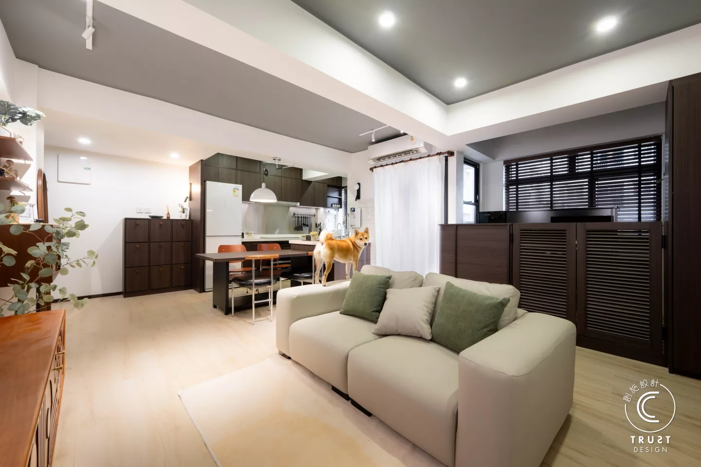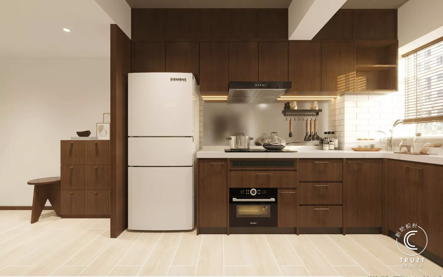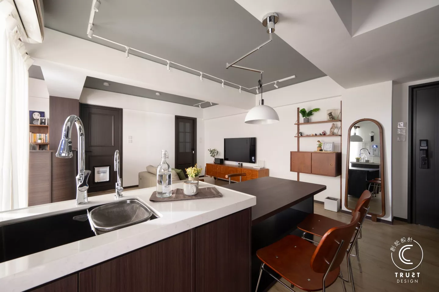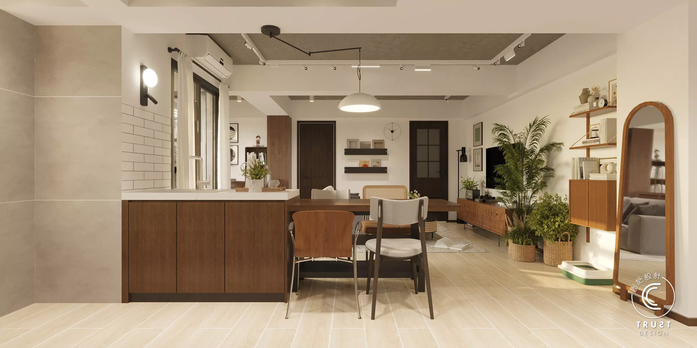 復古氛圍沁染其中,木色調、綠、白色條狀磚和花紋磚裝飾交織出獨特的復古風格。
