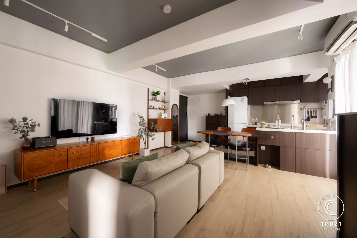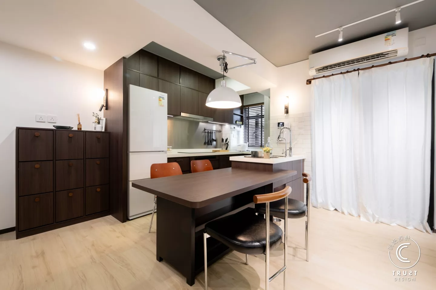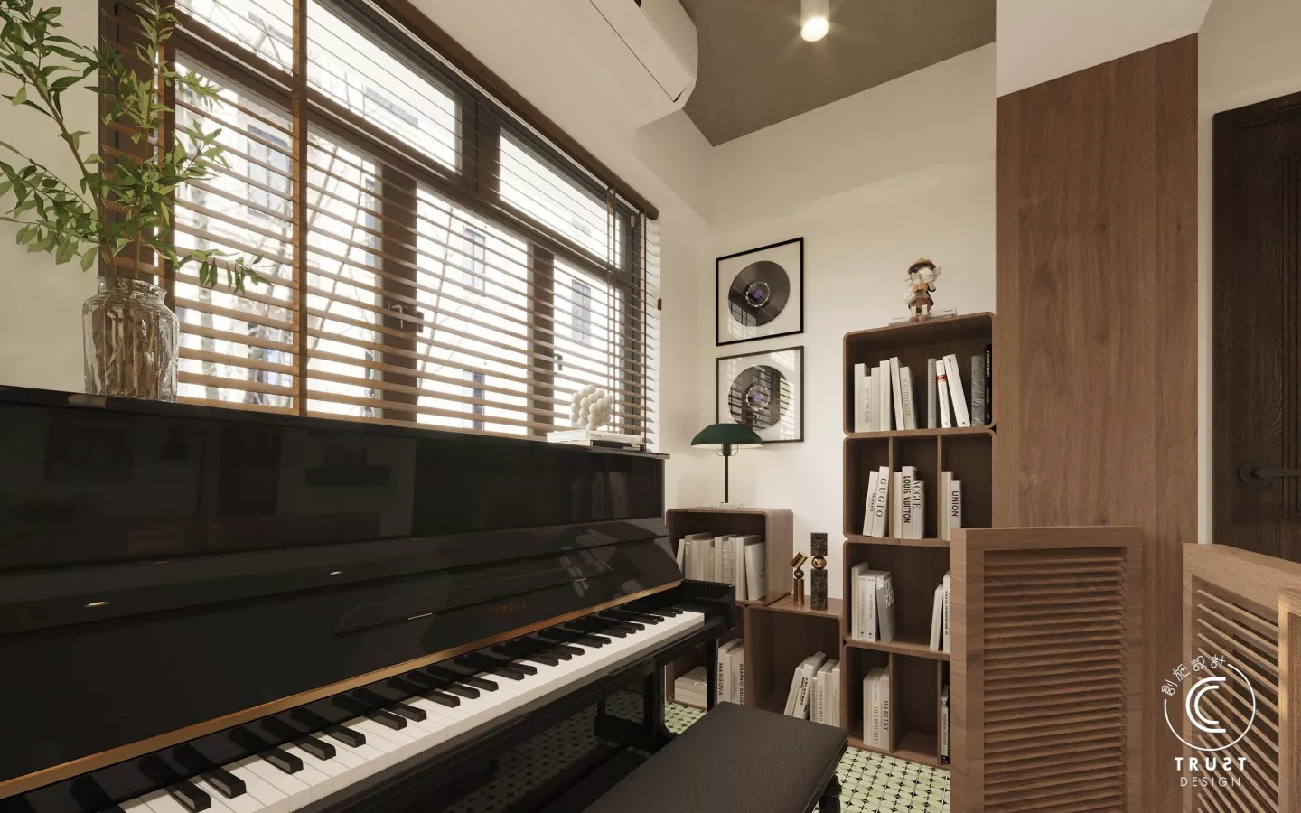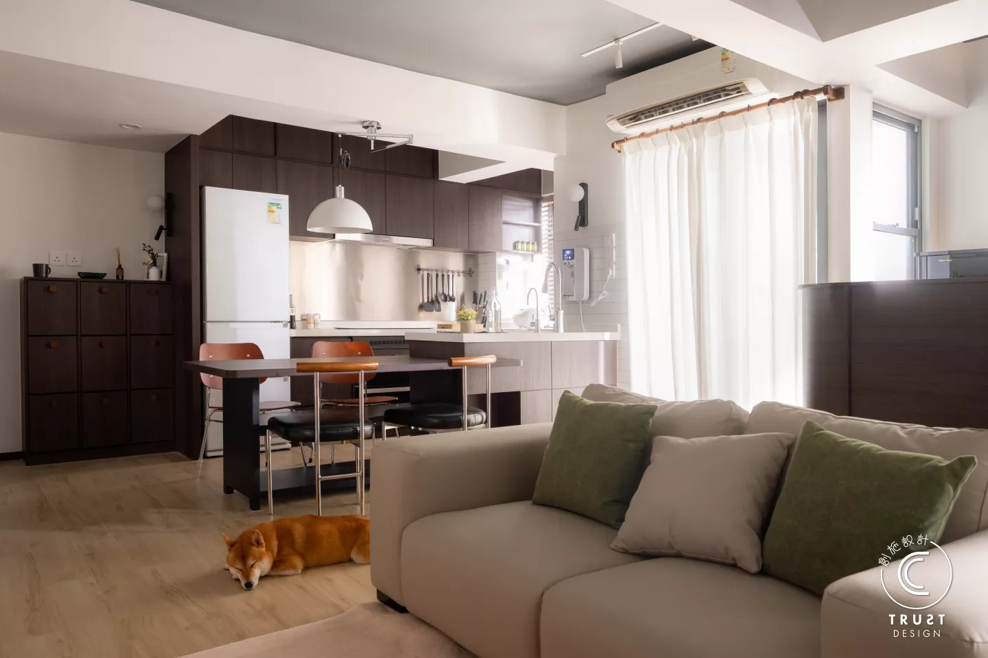 復古氛圍沁染其中,木色調、綠、白色條狀磚和花紋磚裝飾交織出獨特的復古風格。
