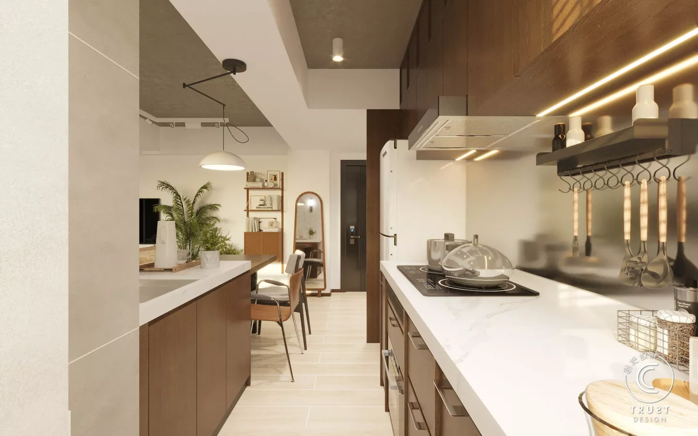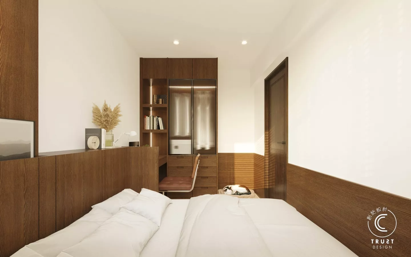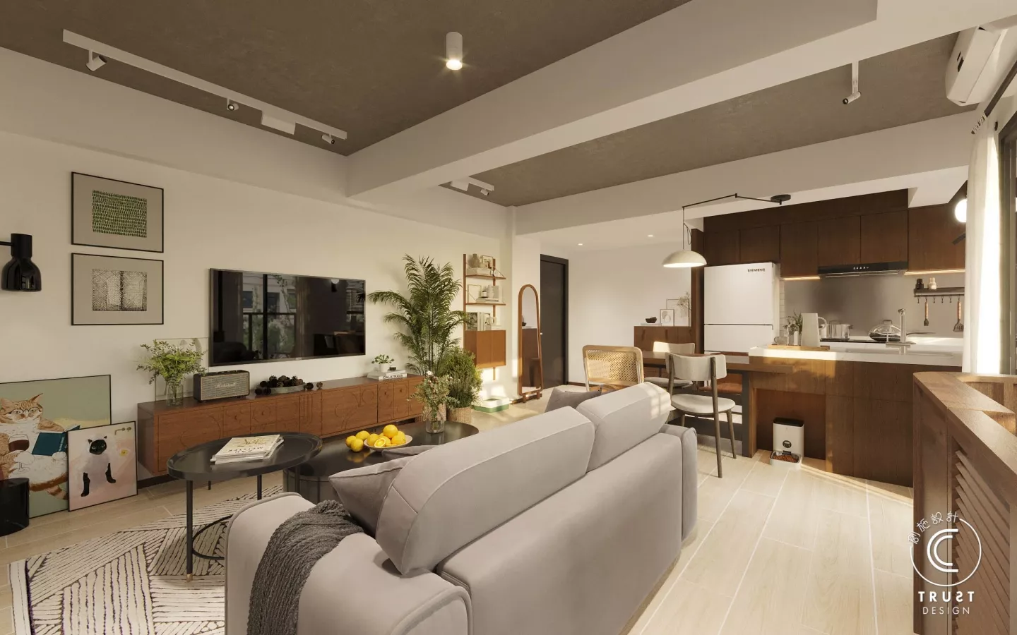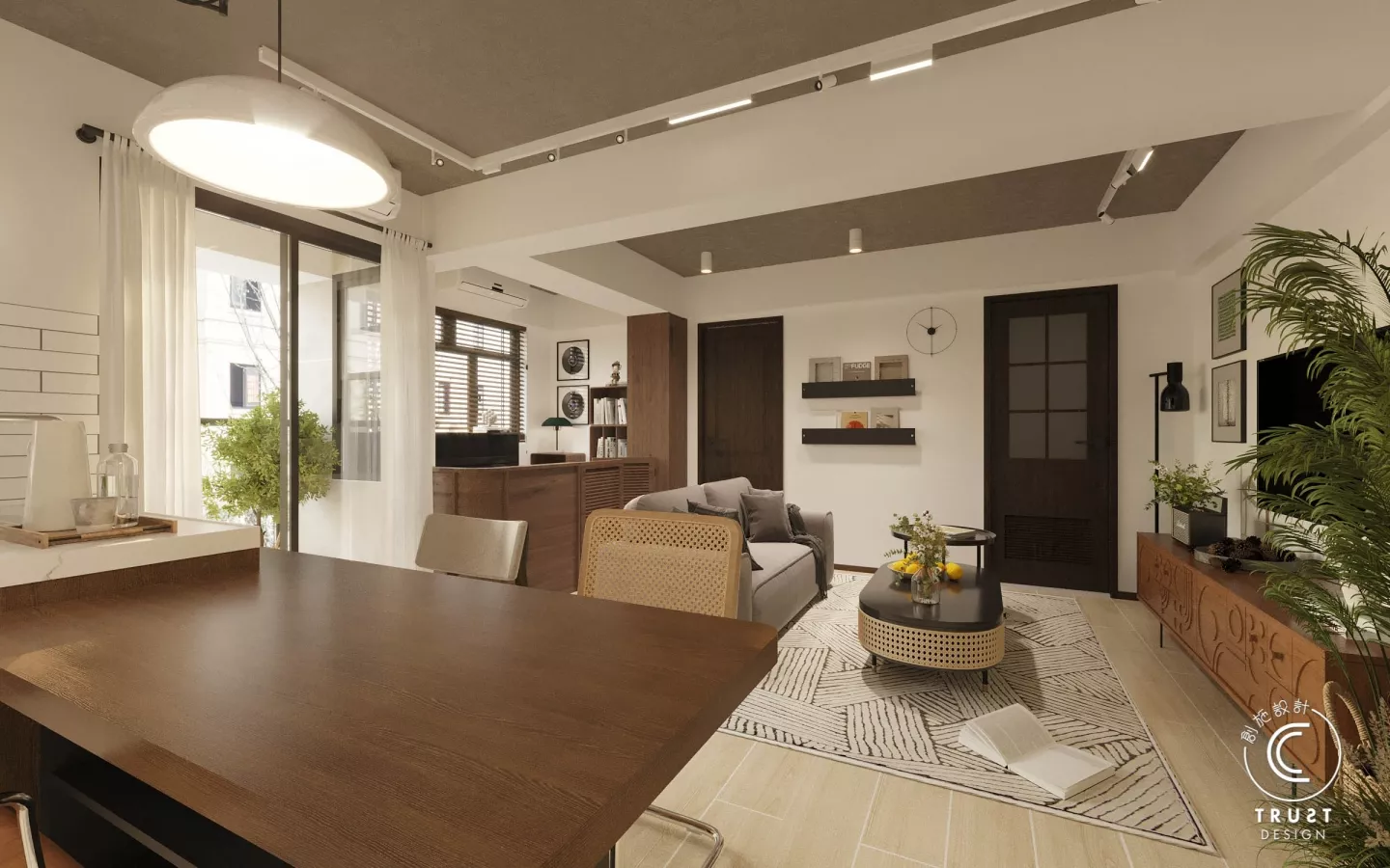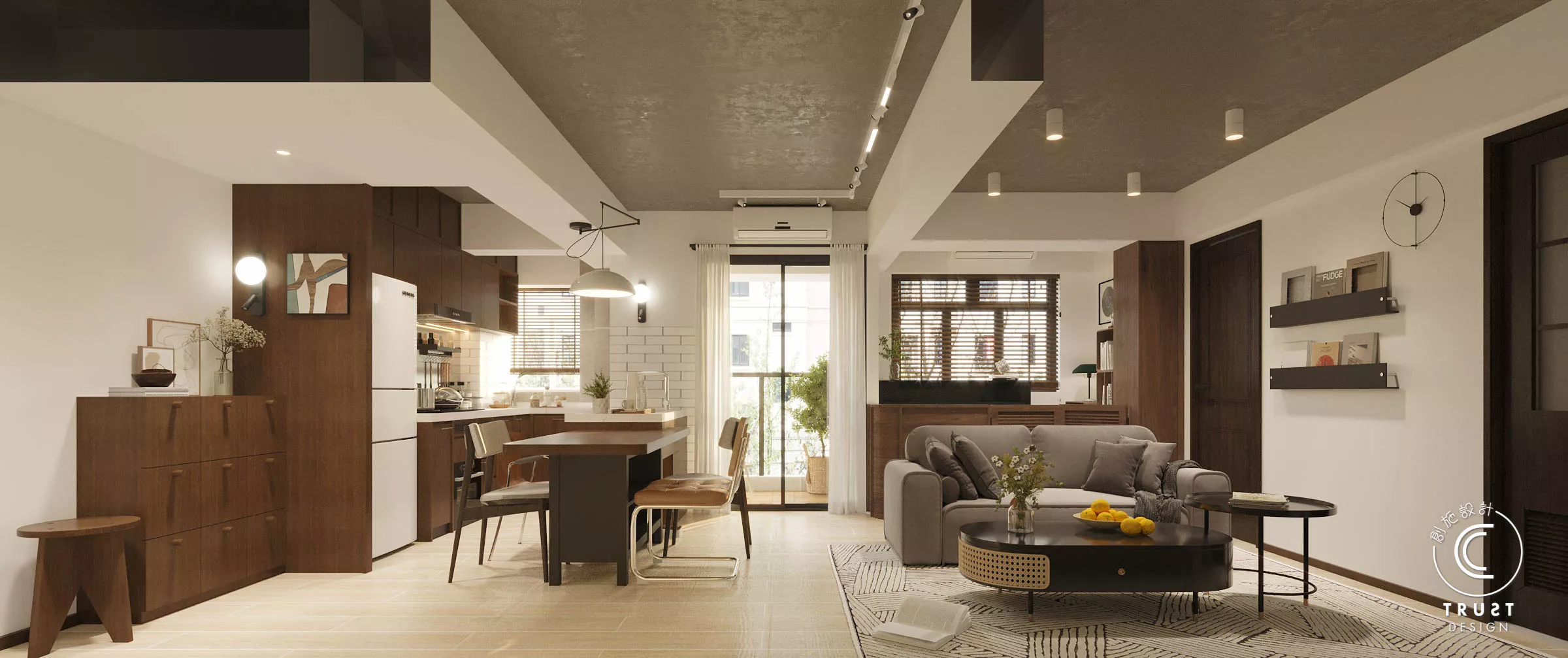 復古氛圍沁染其中,木色調、綠、白色條狀磚和花紋磚裝飾交織出獨特的復古風格。
