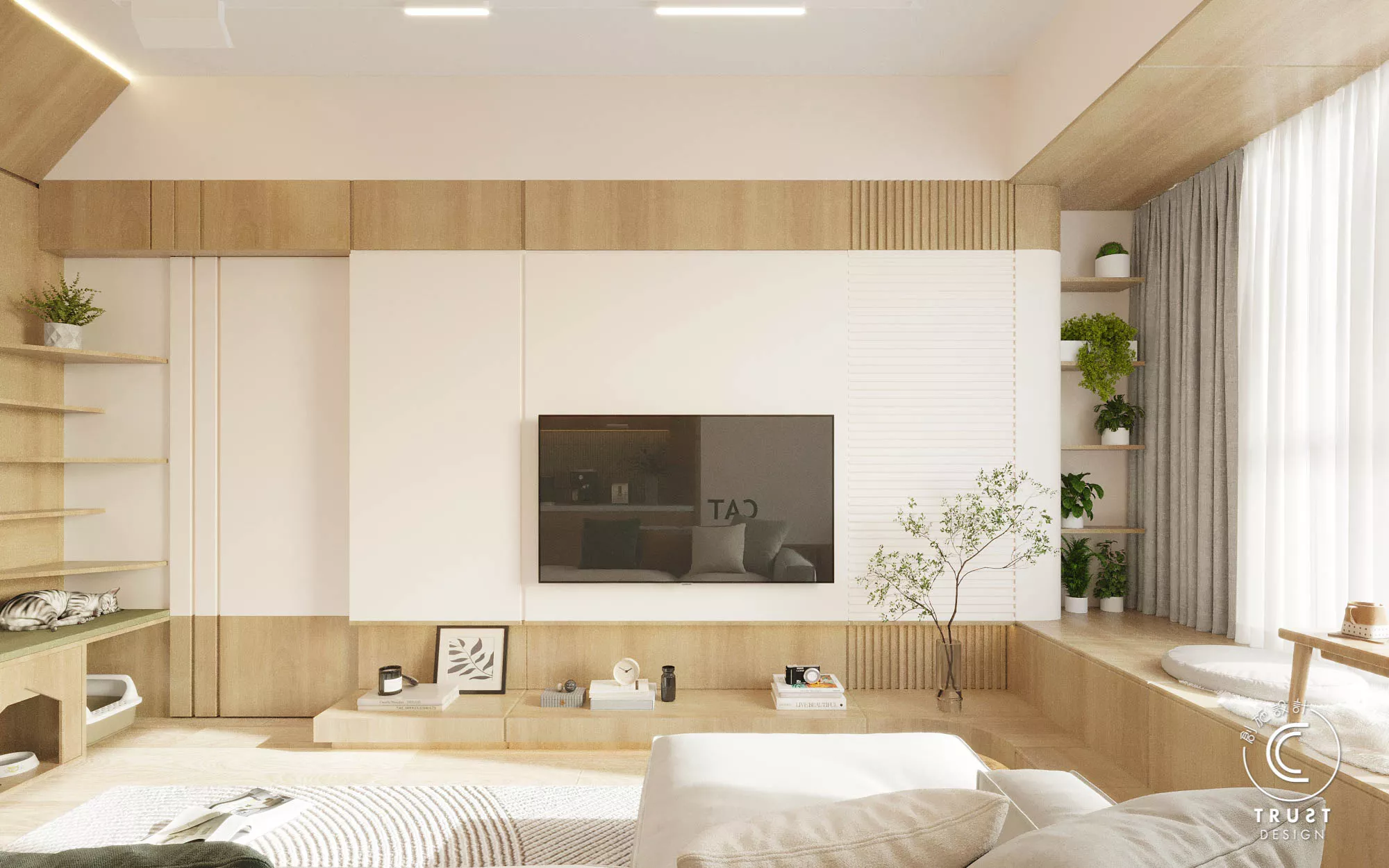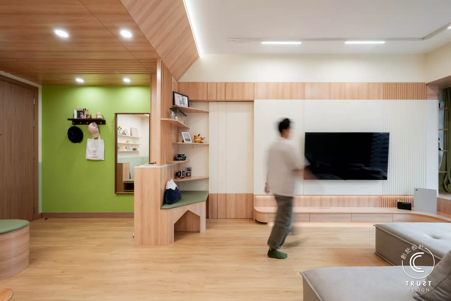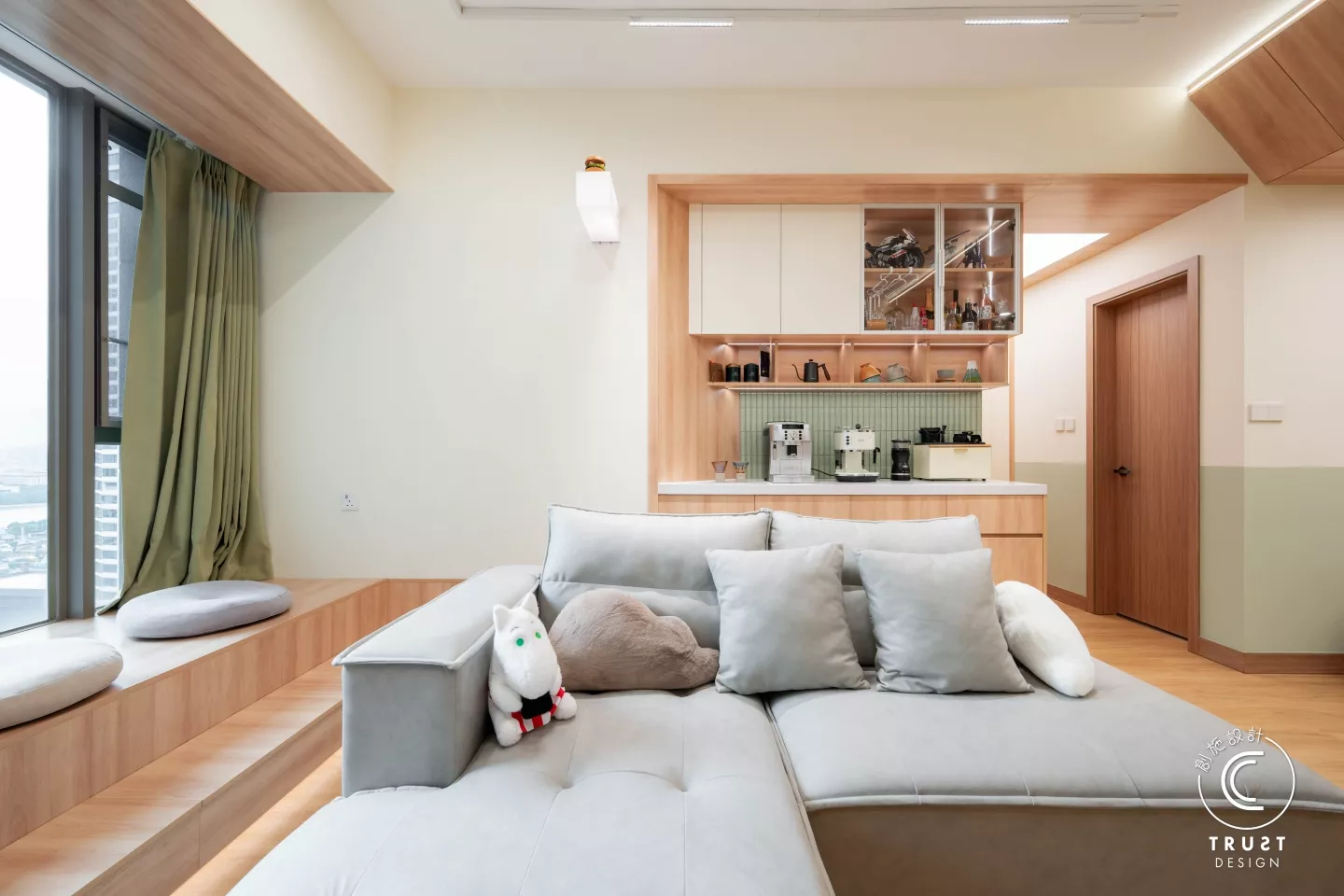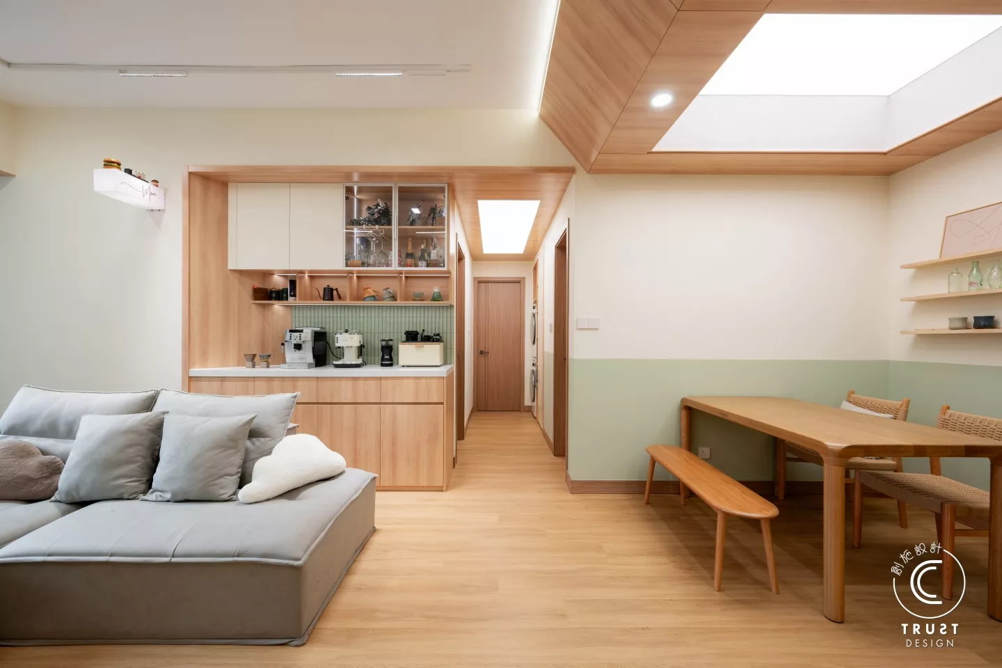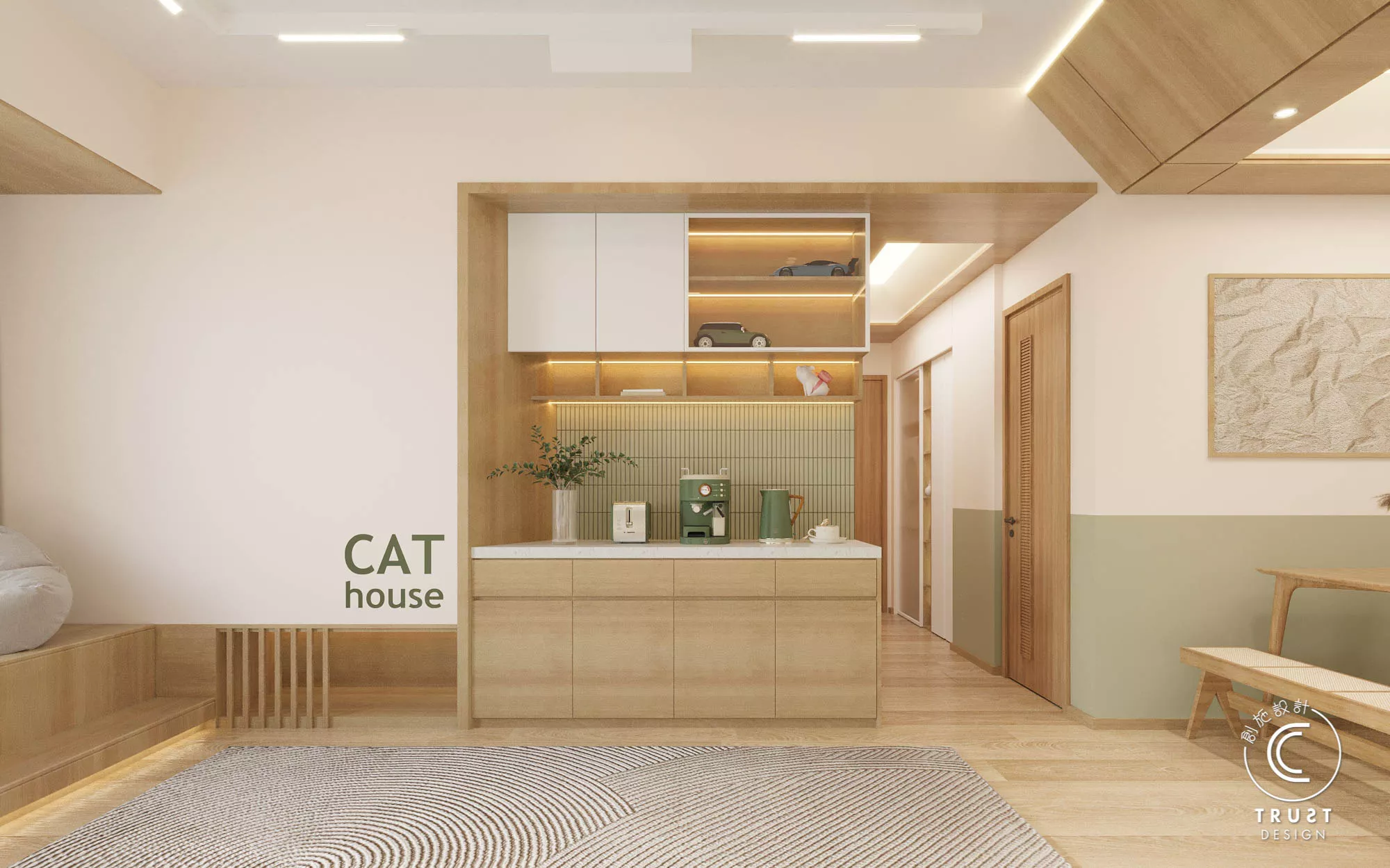 白色、木色和清新的綠色相互交織,創造出一種和諧而舒適的氛圍,就像品味抹茶拿鐵時的愜意和放鬆感一樣。
