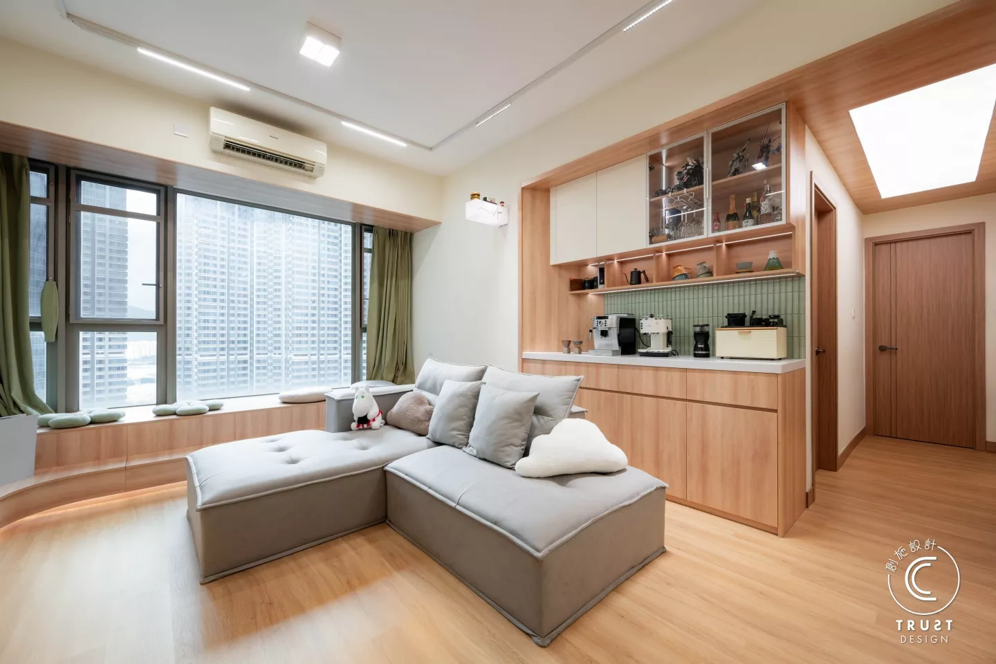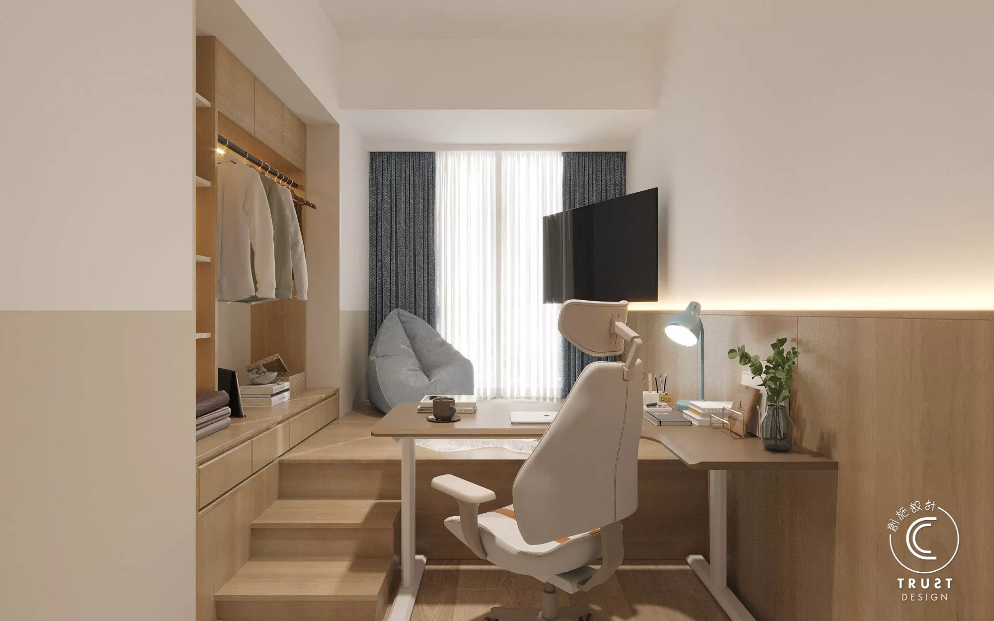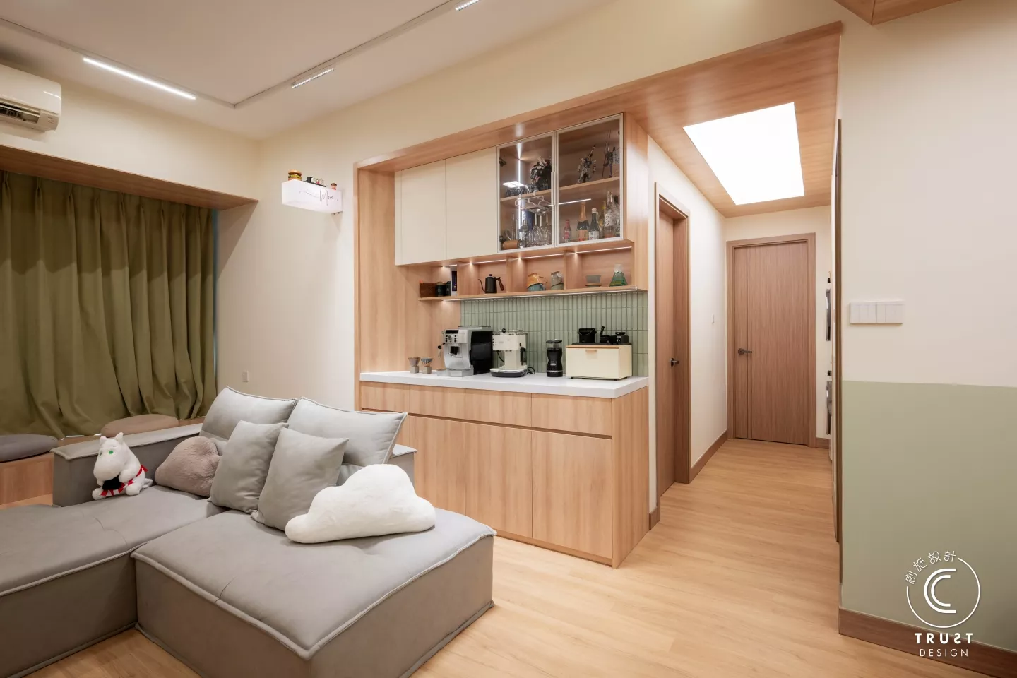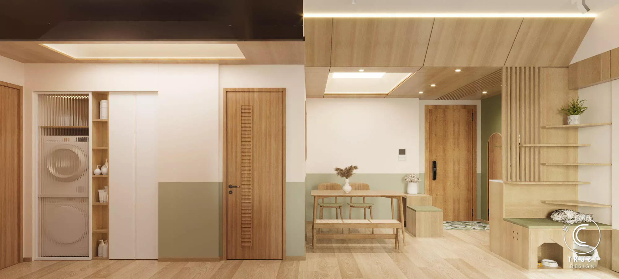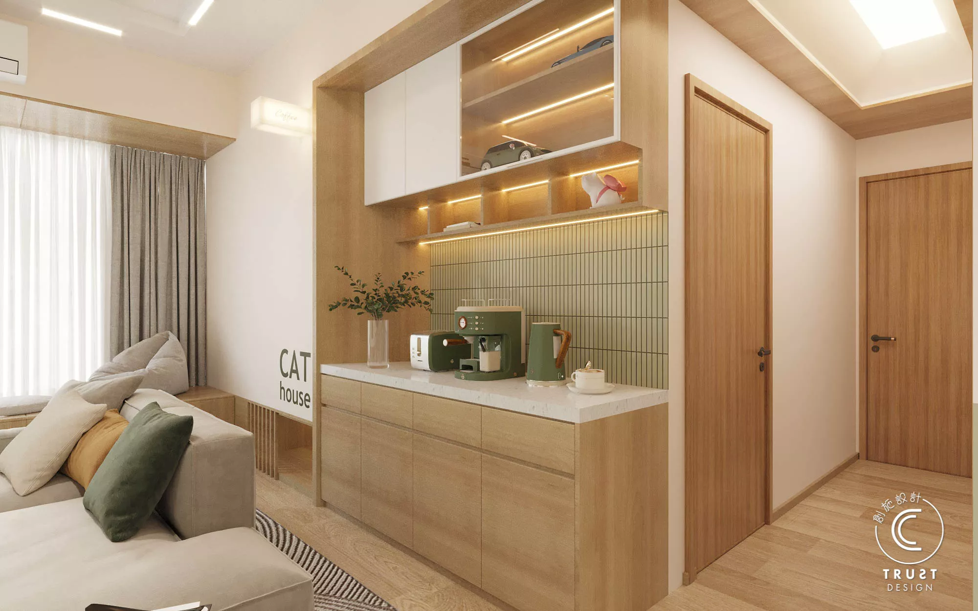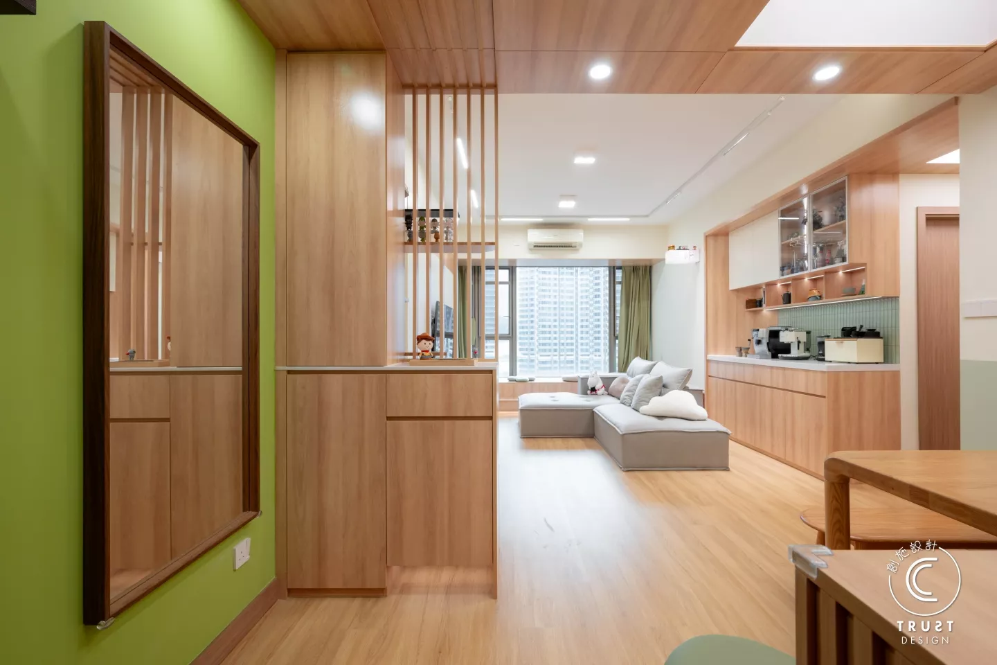 白色、木色和清新的綠色相互交織,創造出一種和諧而舒適的氛圍,就像品味抹茶拿鐵時的愜意和放鬆感一樣。