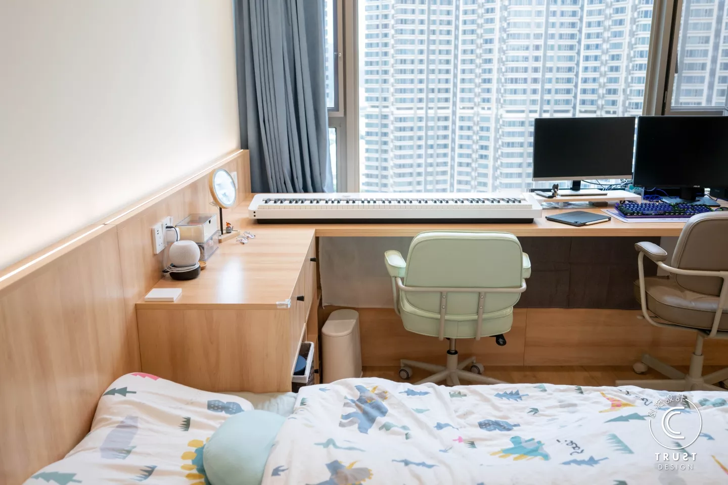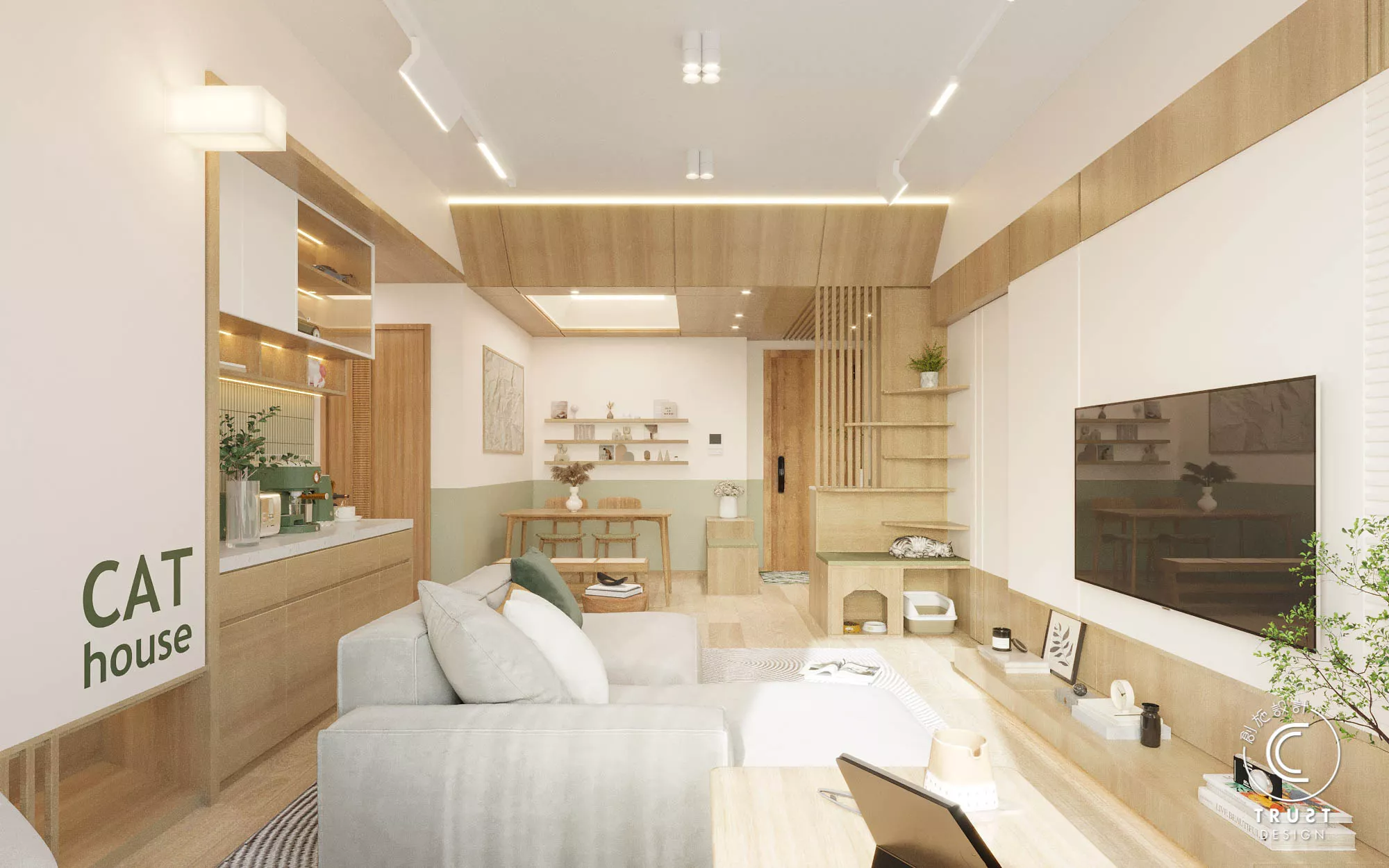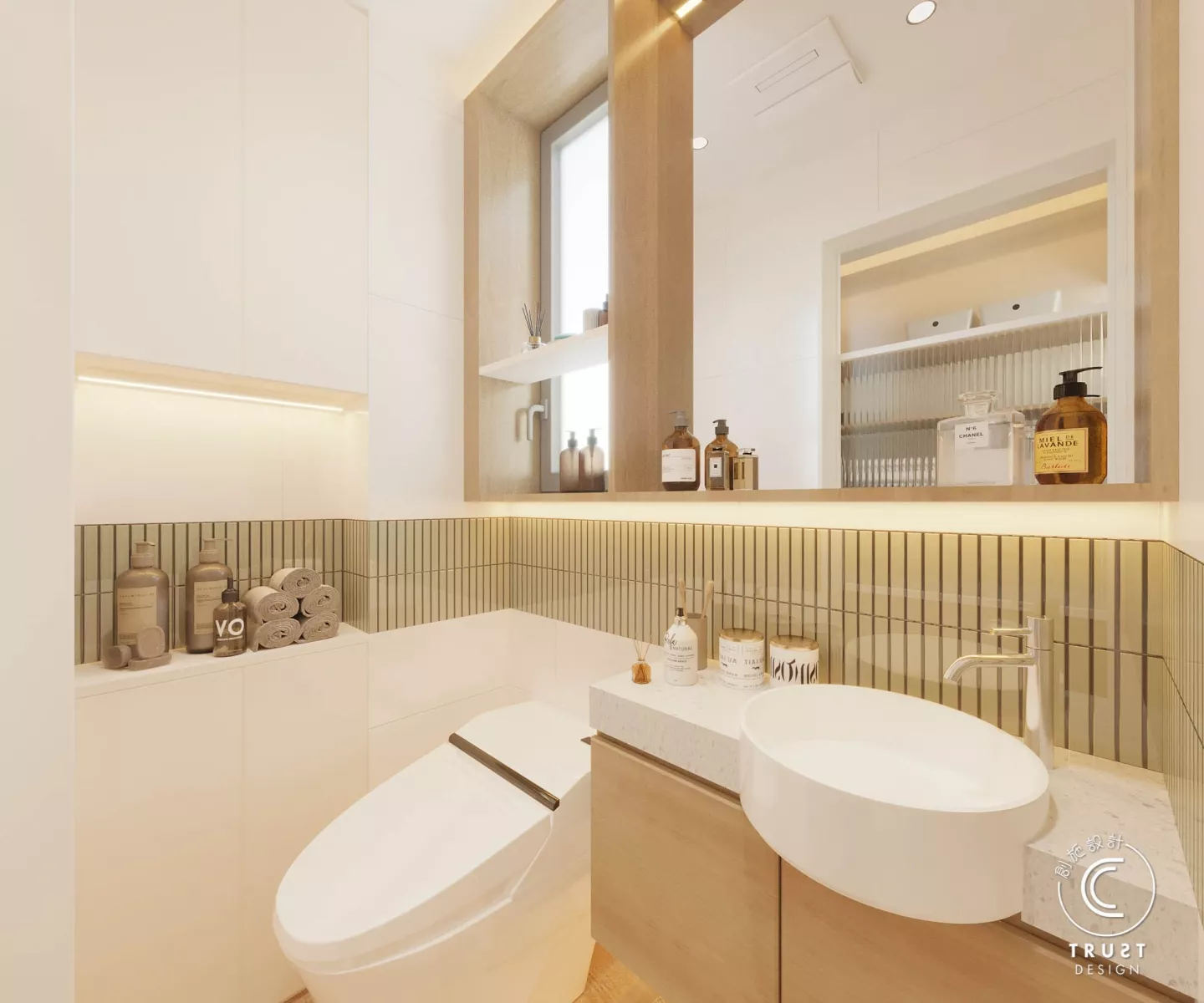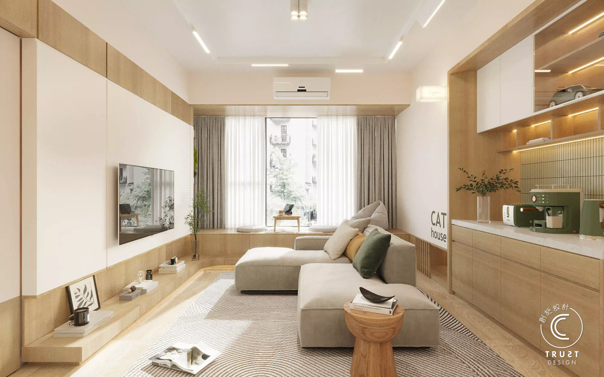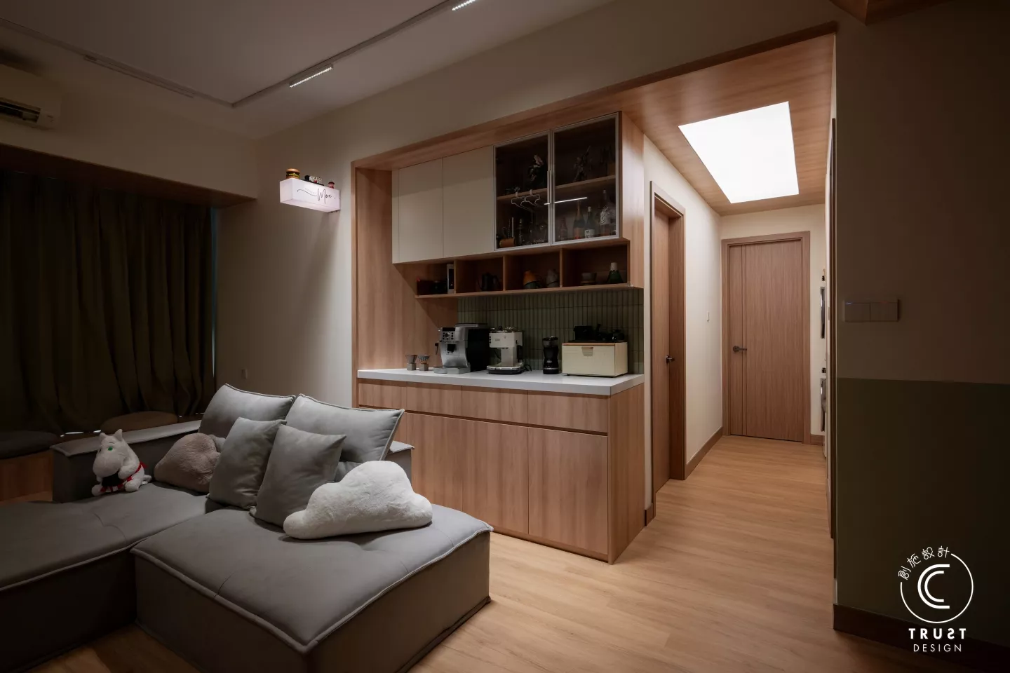 白色、木色和清新的綠色相互交織,創造出一種和諧而舒適的氛圍,就像品味抹茶拿鐵時的愜意和放鬆感一樣。
