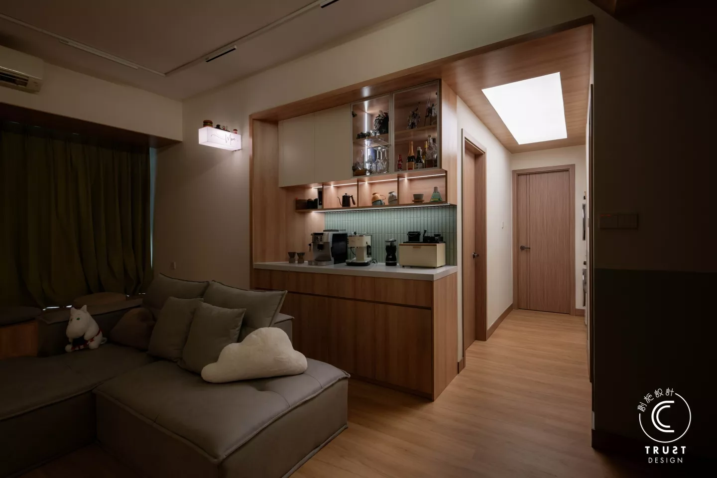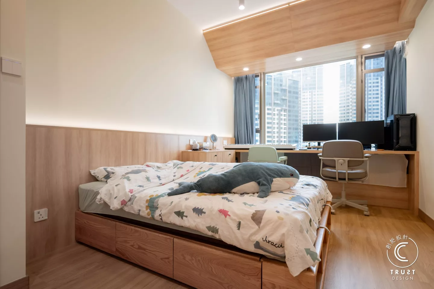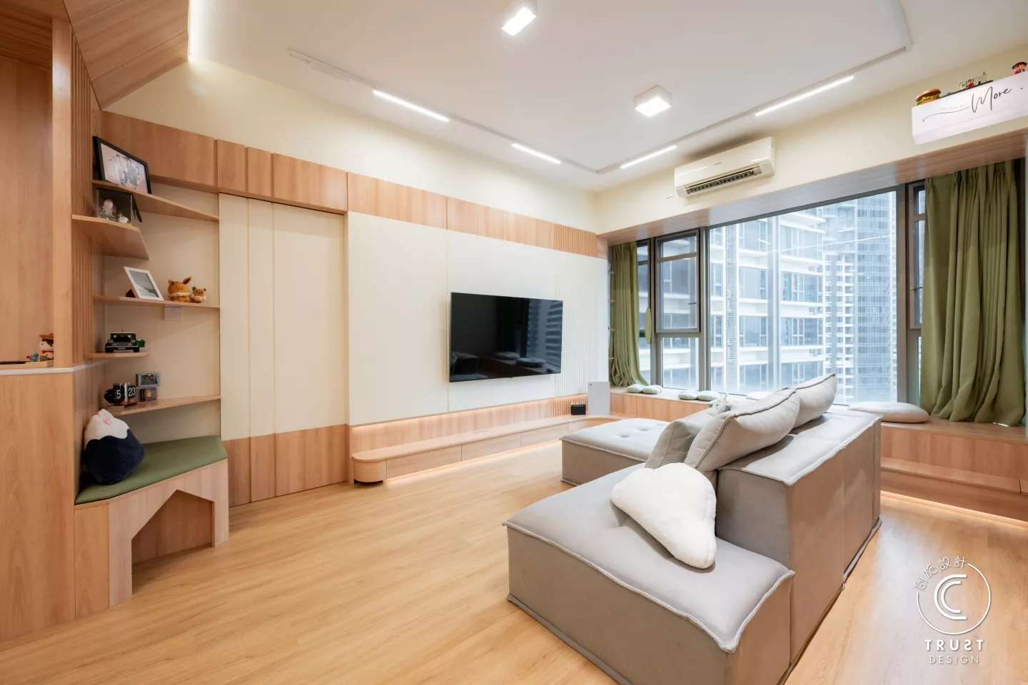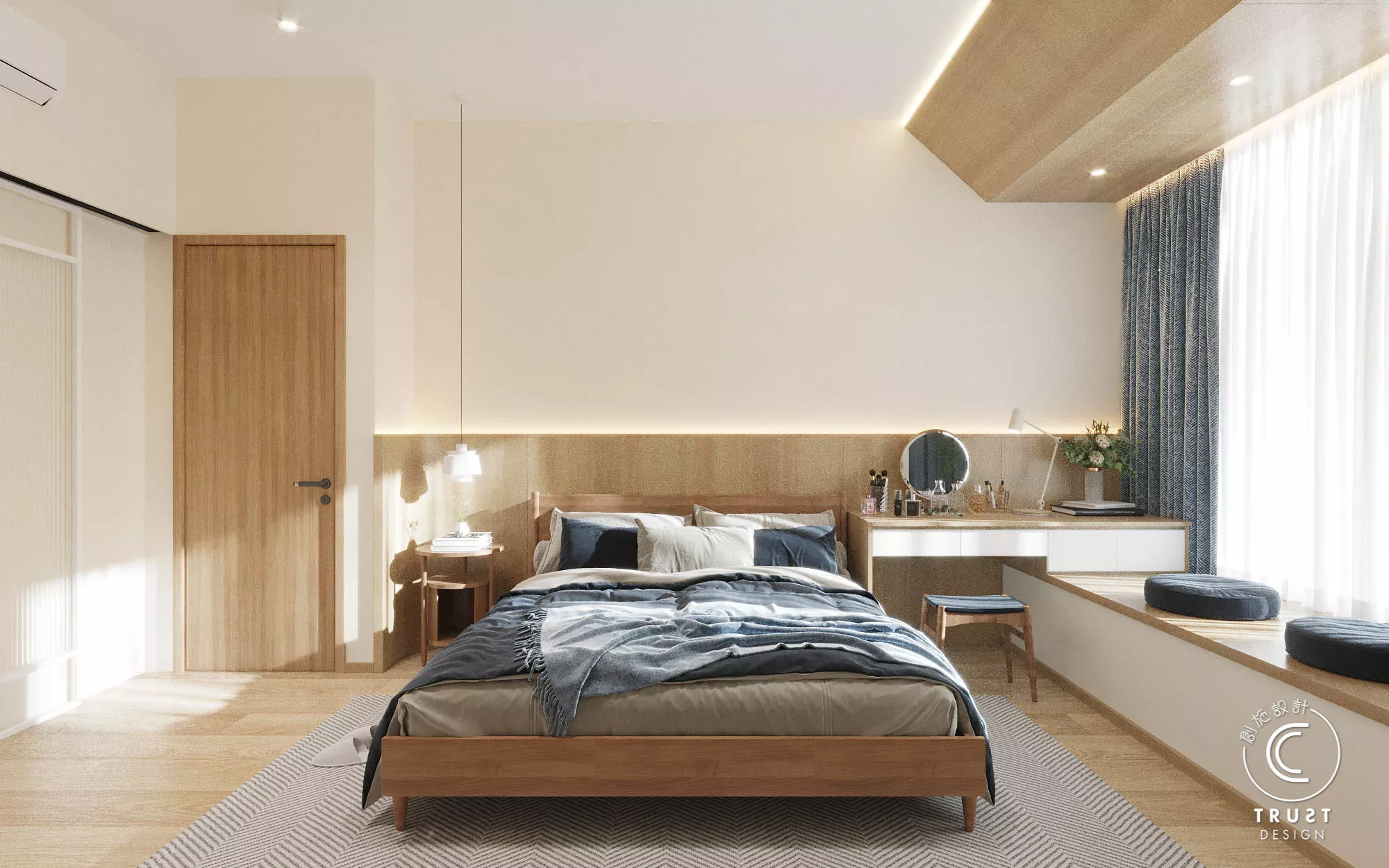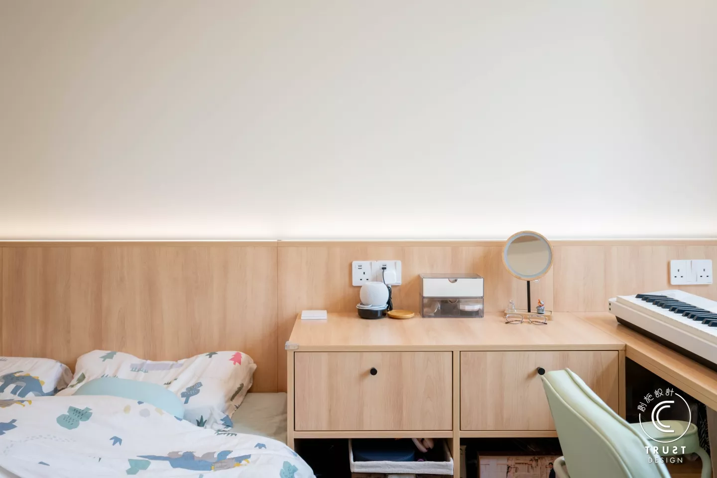 白色、木色和清新的綠色相互交織,創造出一種和諧而舒適的氛圍,就像品味抹茶拿鐵時的愜意和放鬆感一樣。