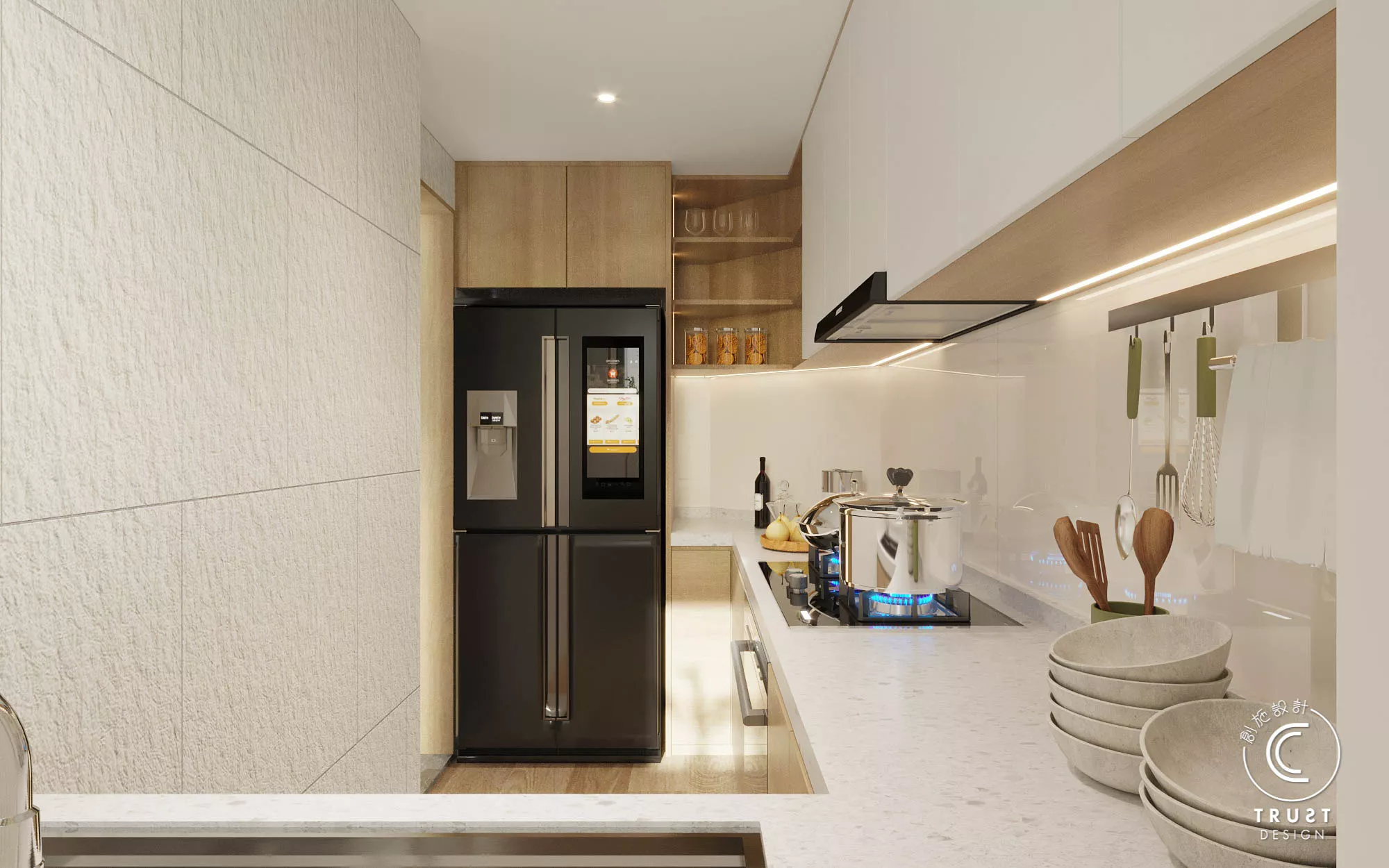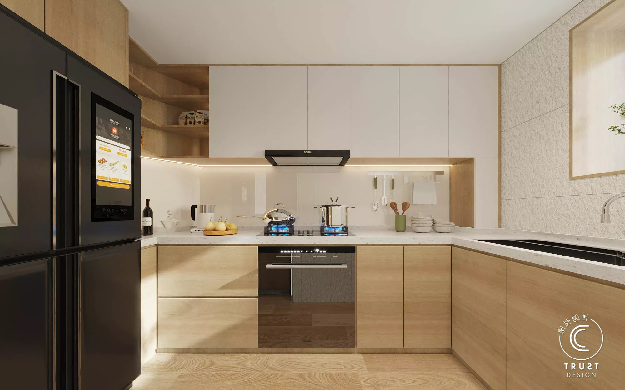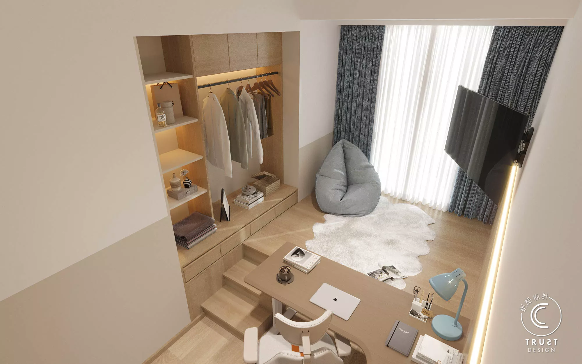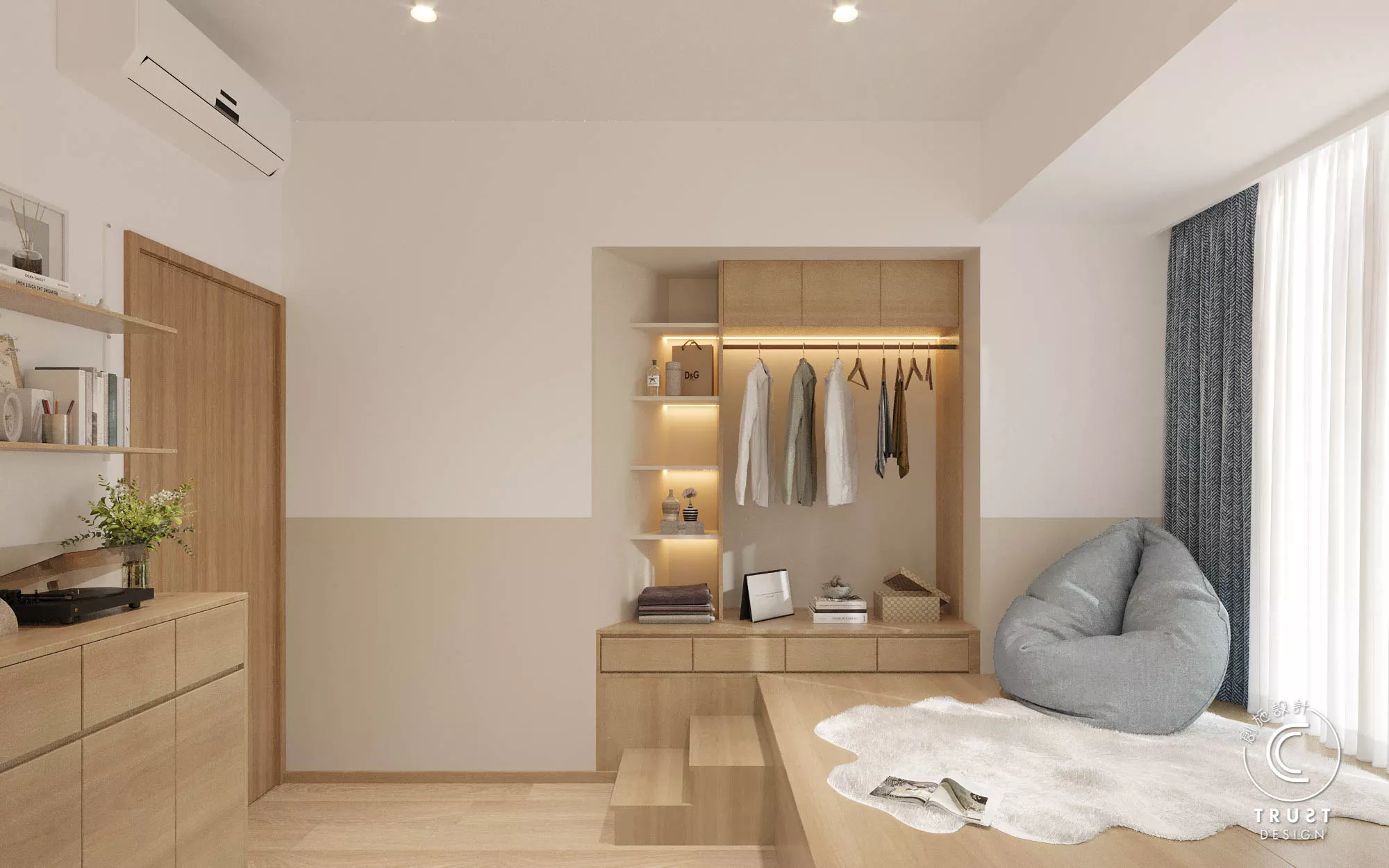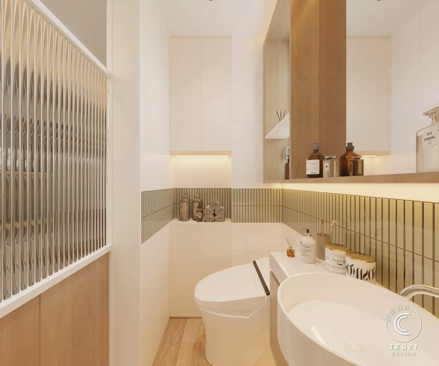 白色、木色和清新的綠色相互交織,創造出一種和諧而舒適的氛圍,就像品味抹茶拿鐵時的愜意和放鬆感一樣。