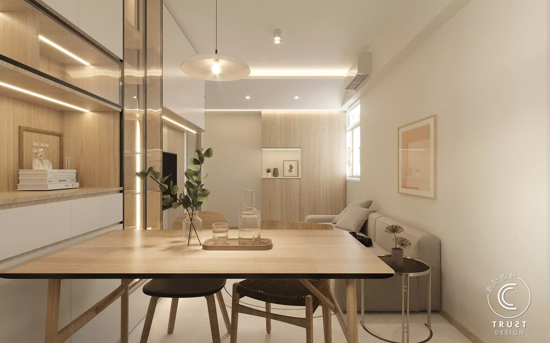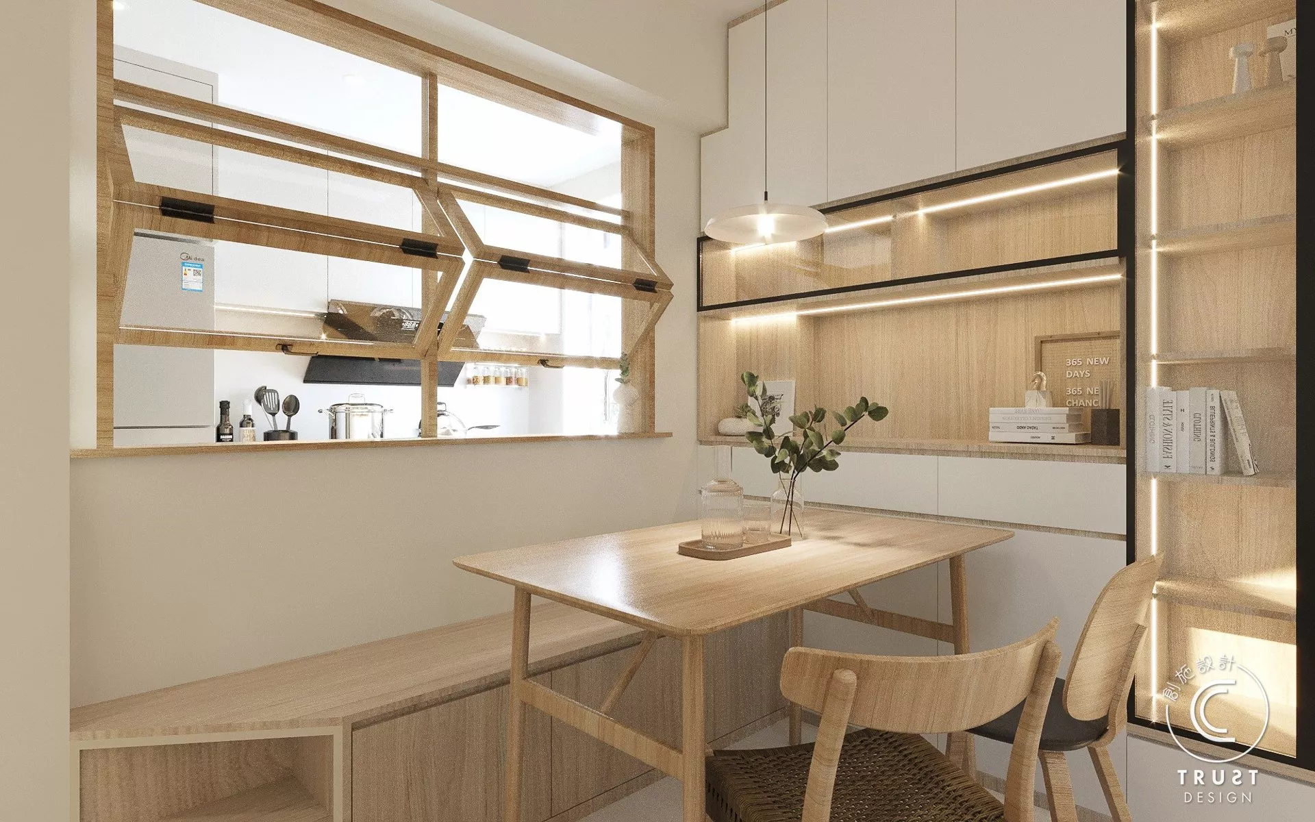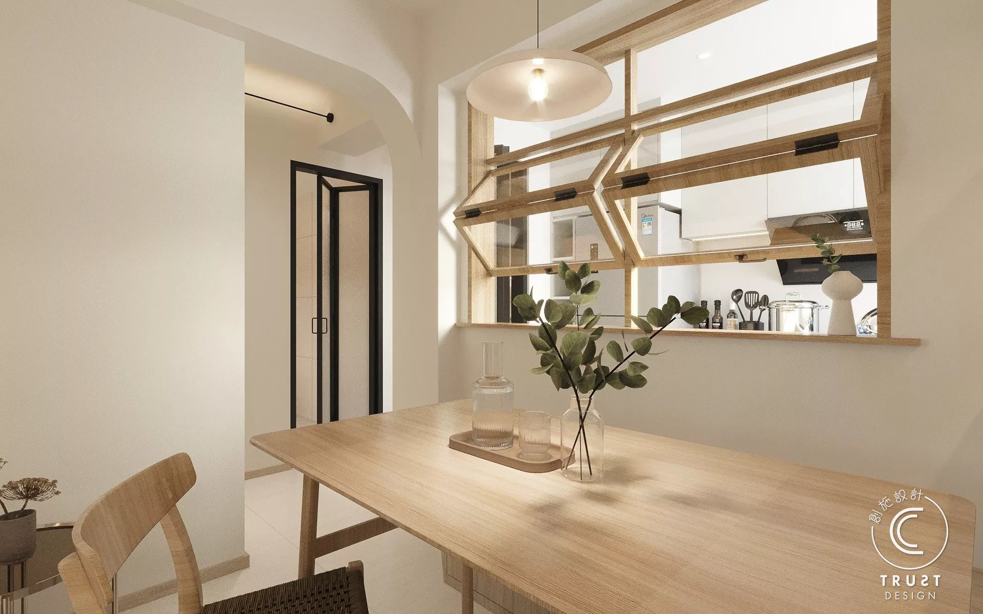沉浸日系風格,打造慢生活。廚房上下摺疊窗,悠閒通透,營造治癒生活節奏。